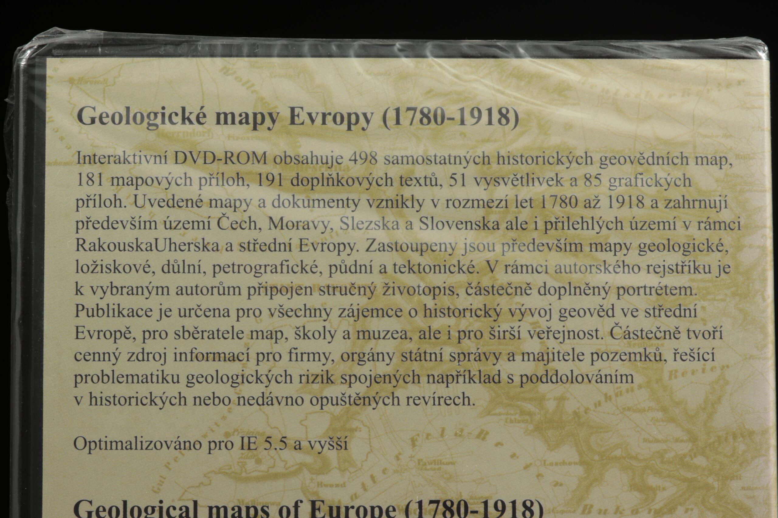 Interactive DVD with digitized maps focused on the territories of the Czech and Slovak Republics. The DVD is unopened.