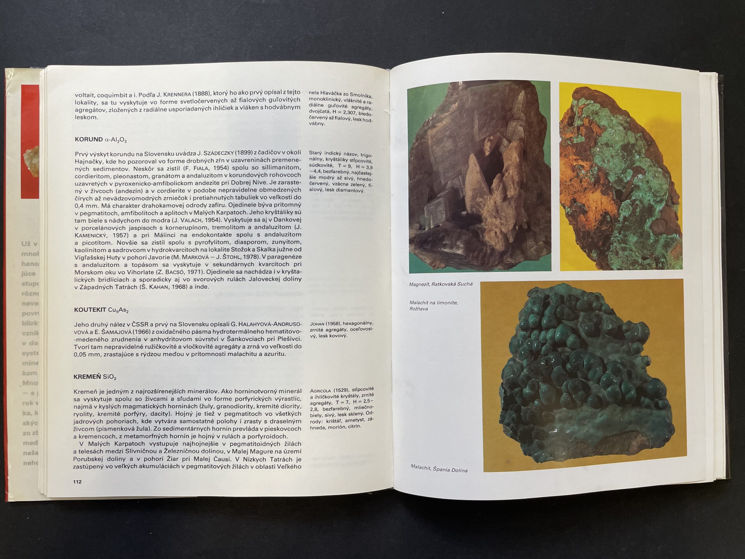 Contents: The book is presented in the form of a lexical overview of minerals occurring in Slovakia, including their most important deposits and the conditions under which they are found. It brings an almost complete list and characterization of minerals found in Slovakia to date, while not forgetting the historical aspect of their discovery and scientific examination. The manuscript was reviewed by prof. RNDr. Miroslav Koděra, CSc. and RNDr. Jaroslav Švenek.