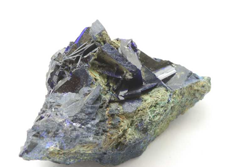 A large cluster of several dark blue crystals. A beautiful specimen of shiny azurite crystals from the Tsumeb locality in Namibia.