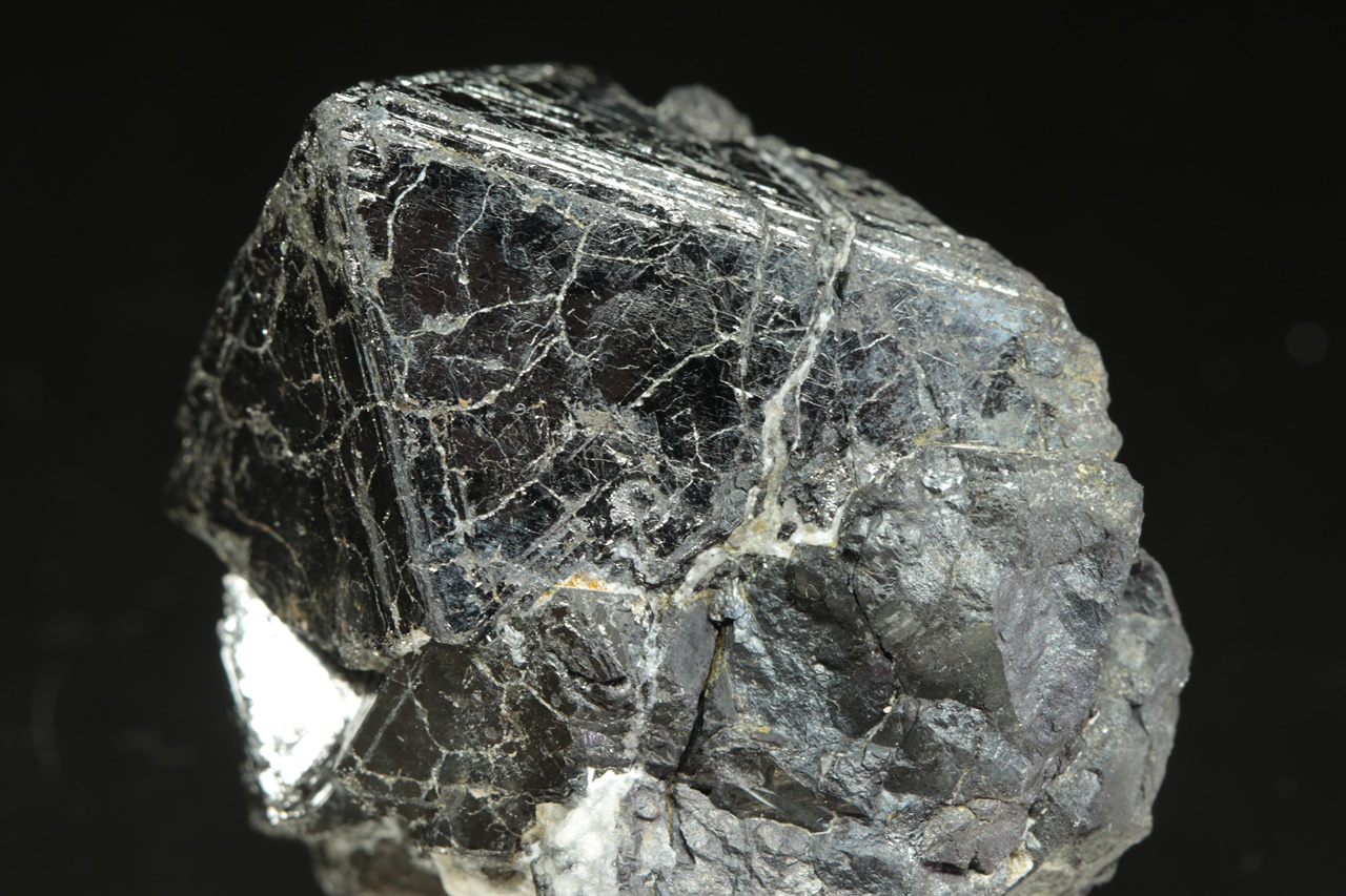 Three and a half centimeter large, shiny crystal of magnetite growing together with smaller crystals.