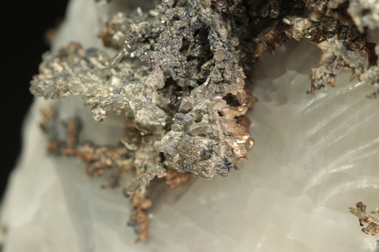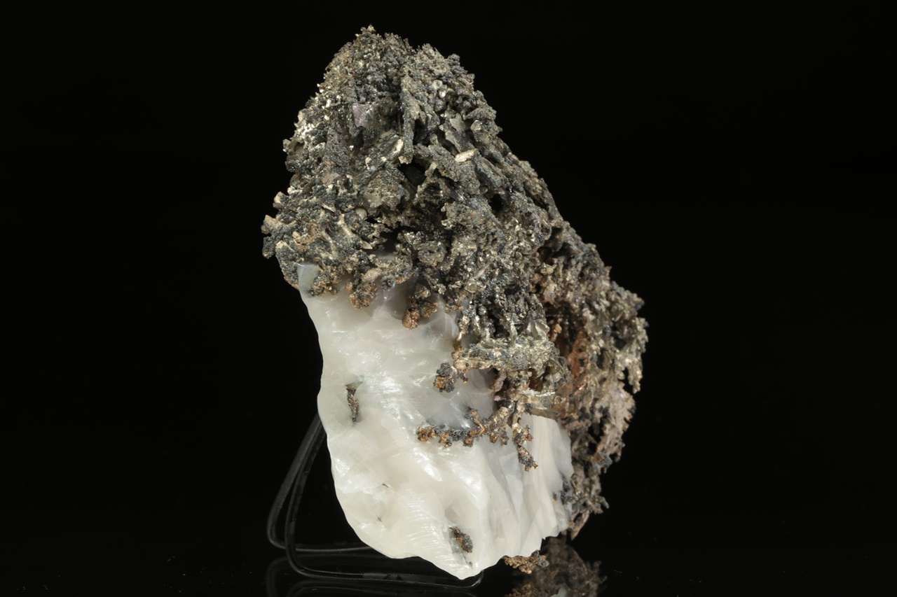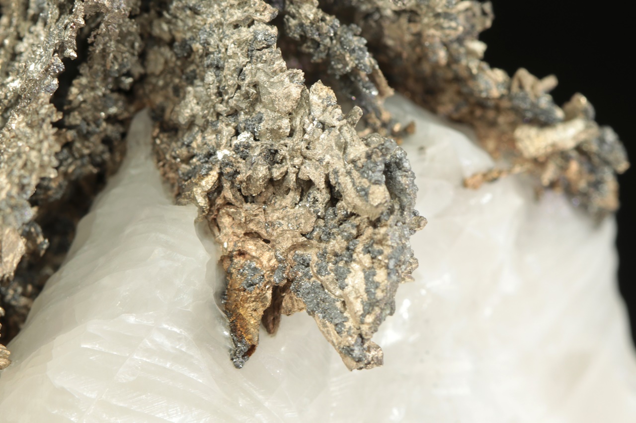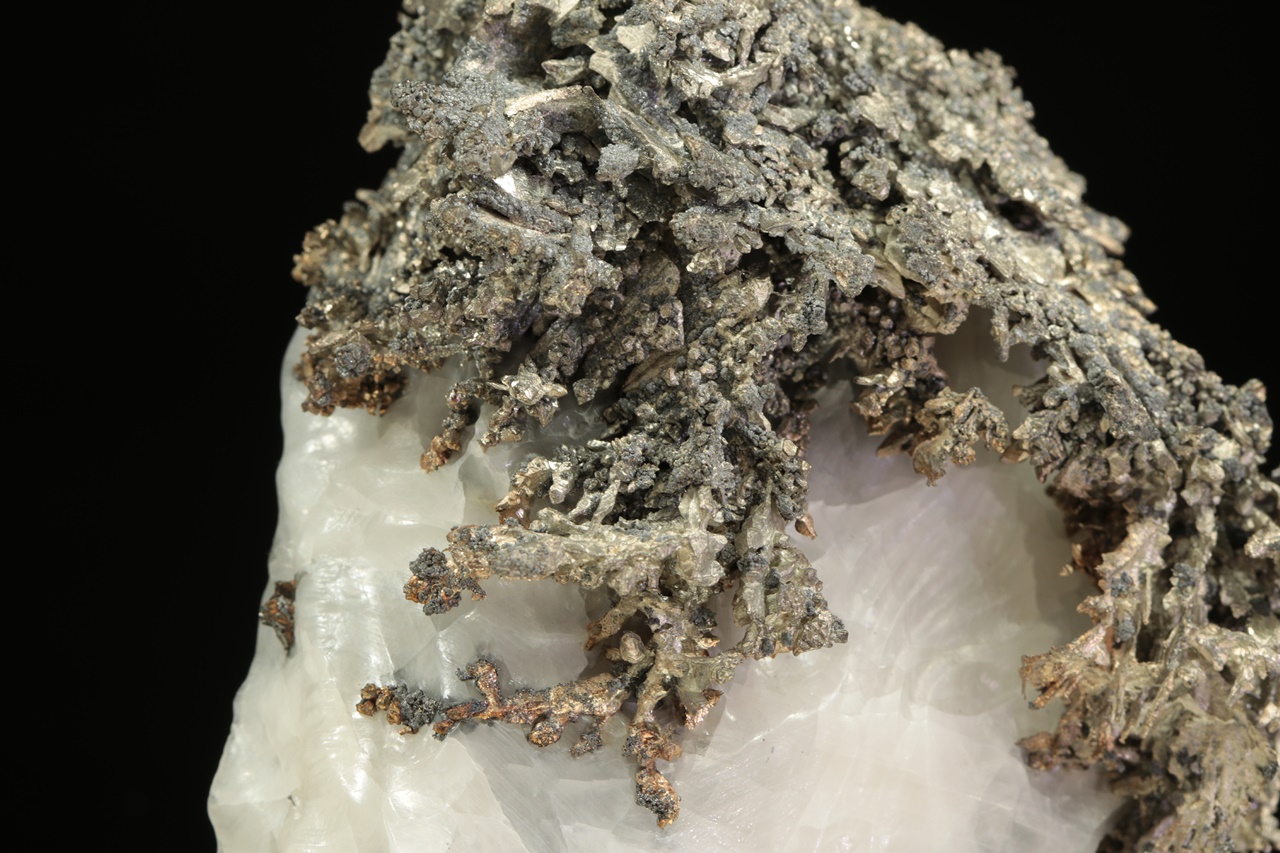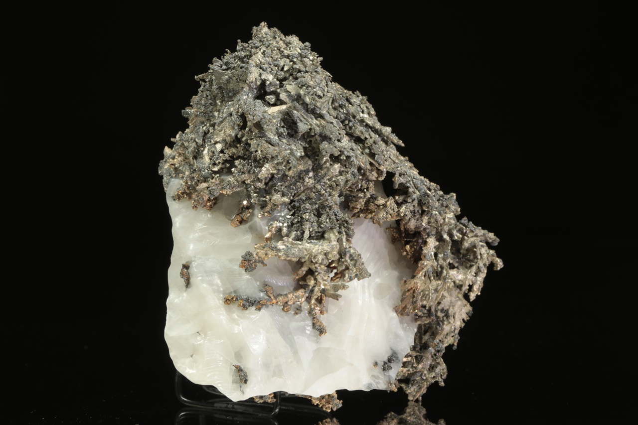 Přenádherný vzorek dendriticky narostlého krystalovaného zlata vytvářející zcela mimořádné, zpletité větvičky. Stříbro je místy porostlé tmavým akantitem.