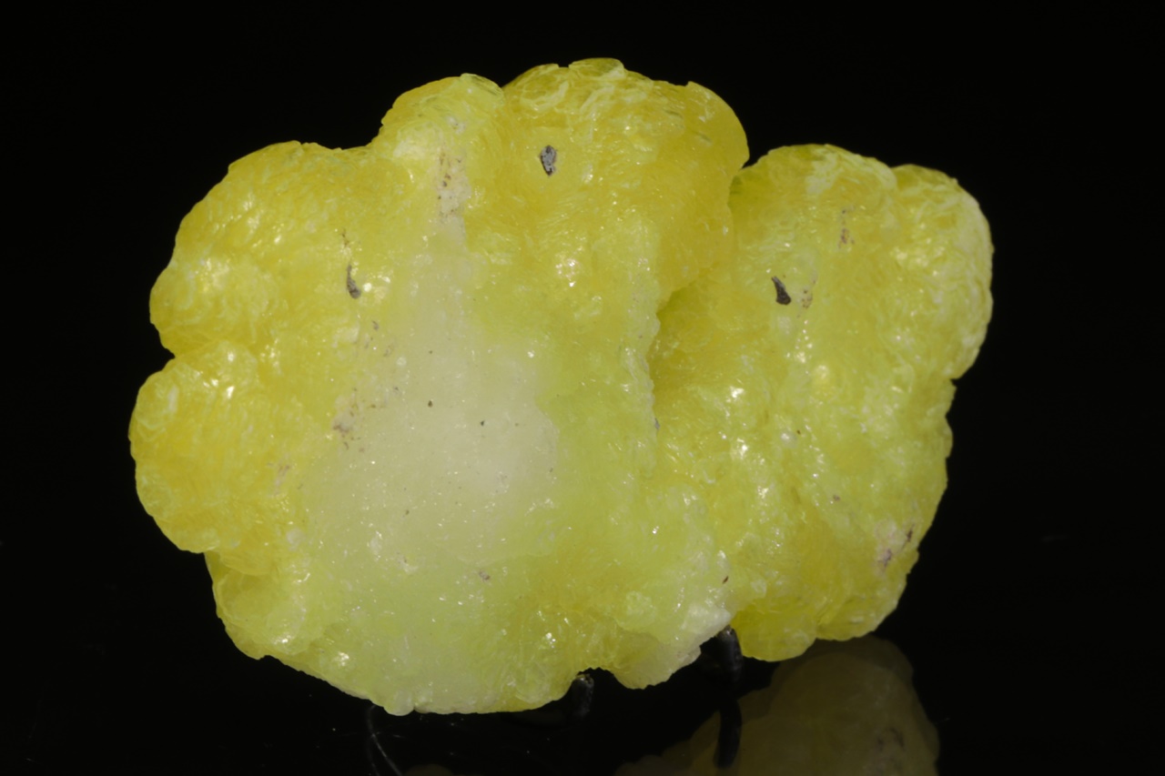 Canary yellow brucite forming waxy, lustrous, kidney-shaped aggregates. A very nice specimen from the famous locality of this mineral.