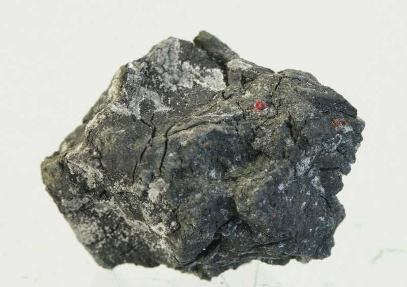 A fine specimen of the arsenic and thallium sulfide lorandite from the Beishe locality, China. A sample of carmine red aggregates of the rare lorandite.