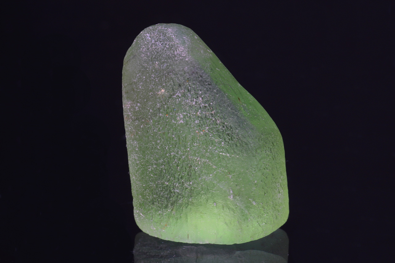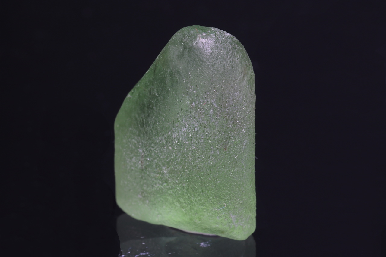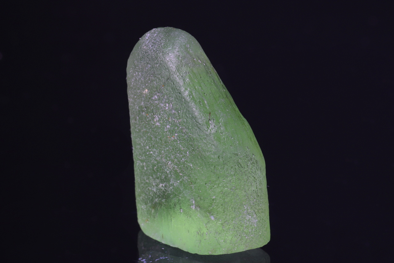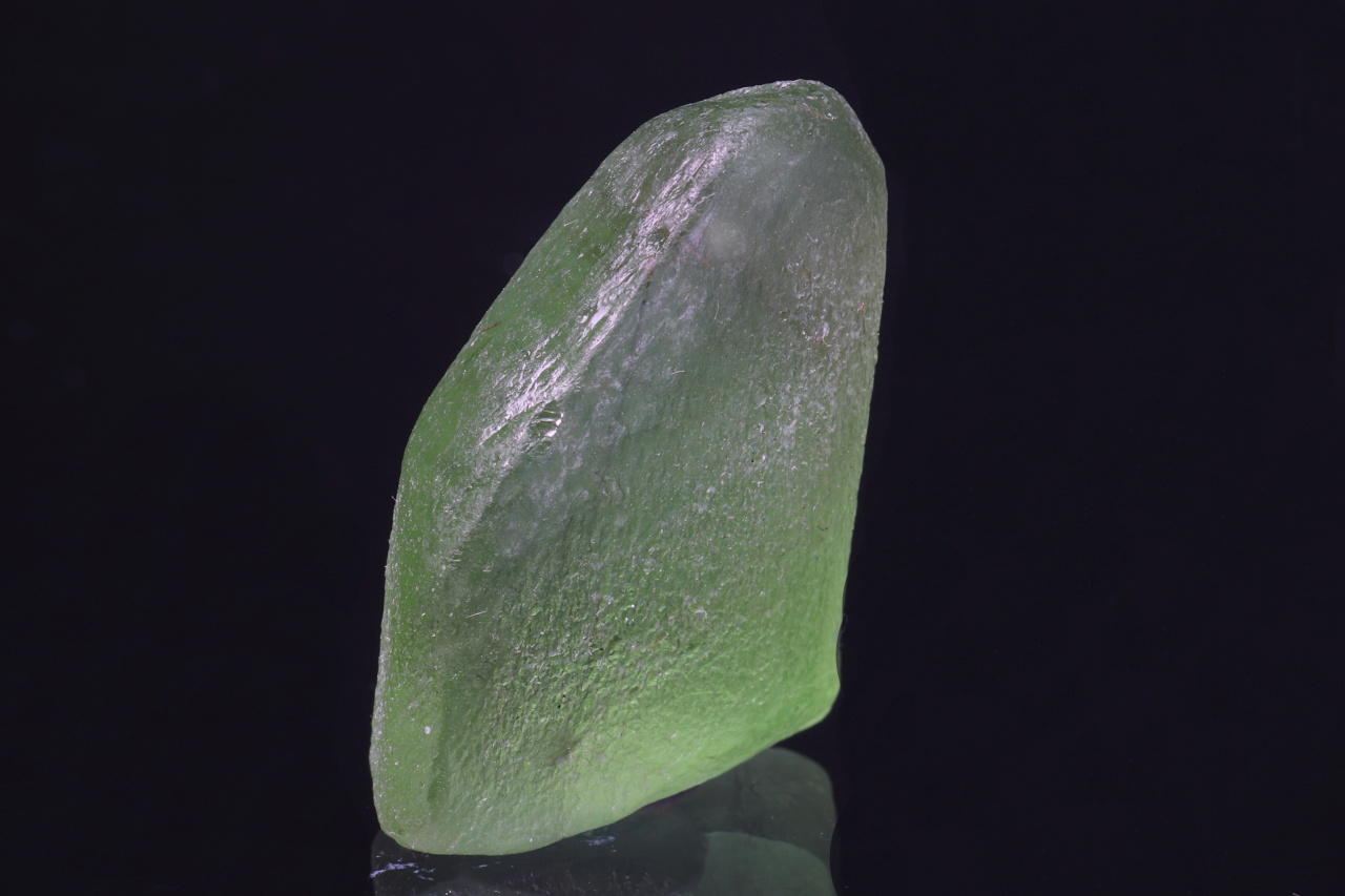 Krásně zelený průhledný zaoblený krystal olivínu o velikosti 22 mm. Tento vzorek pochází z naleziště Sapat Gali v údolí Kaghan v Pákistánu.