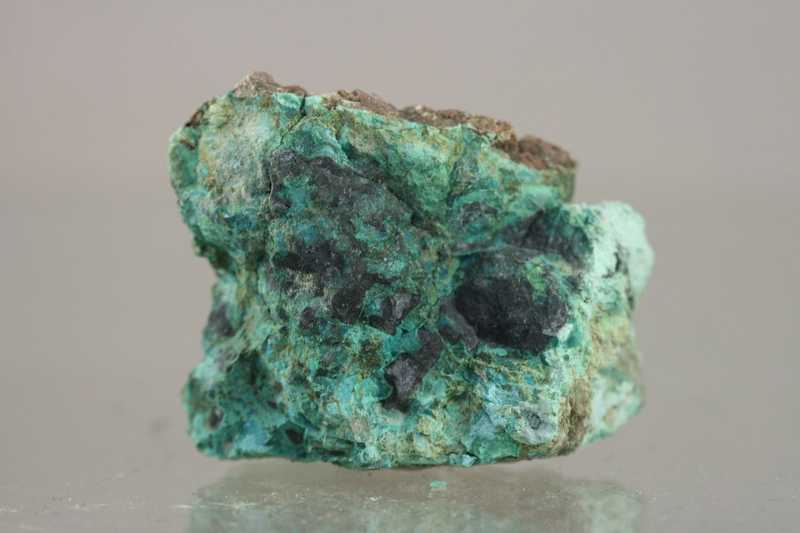 A fine specimen of copper minerals from the Běloves locality. A specimen of massive cuprite partially covered by blue-green chrysocolla.