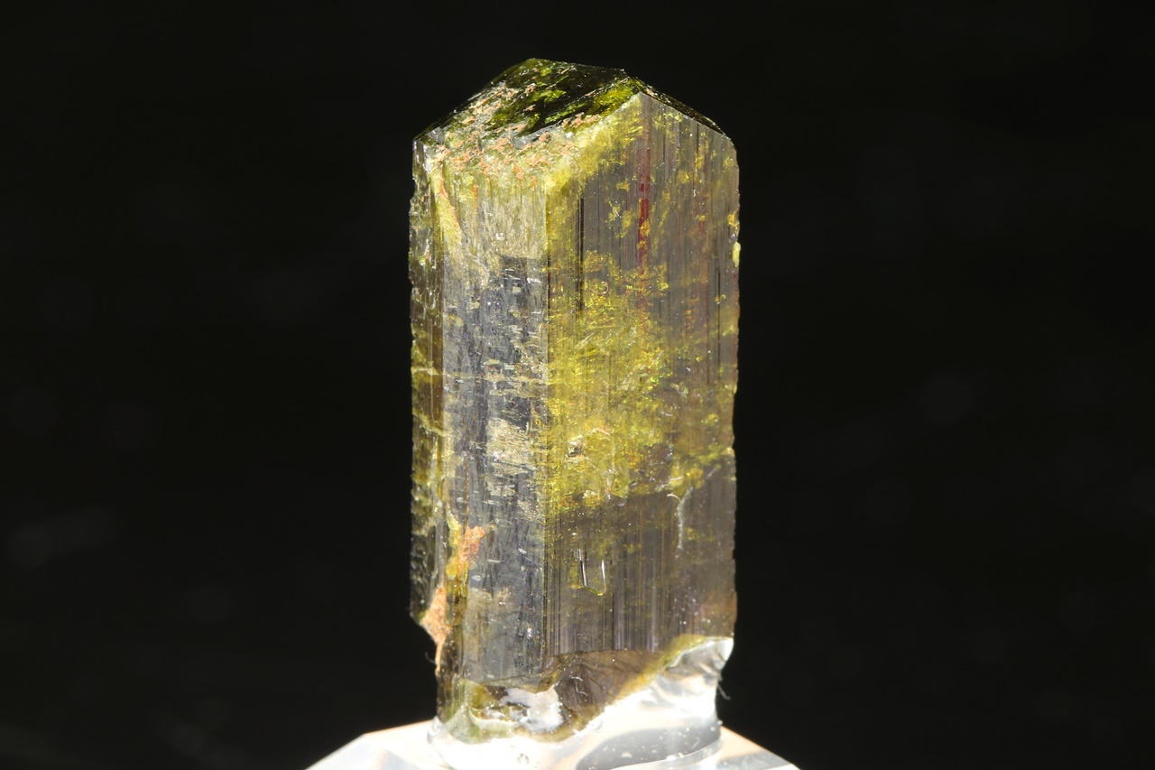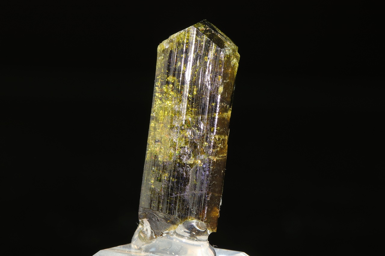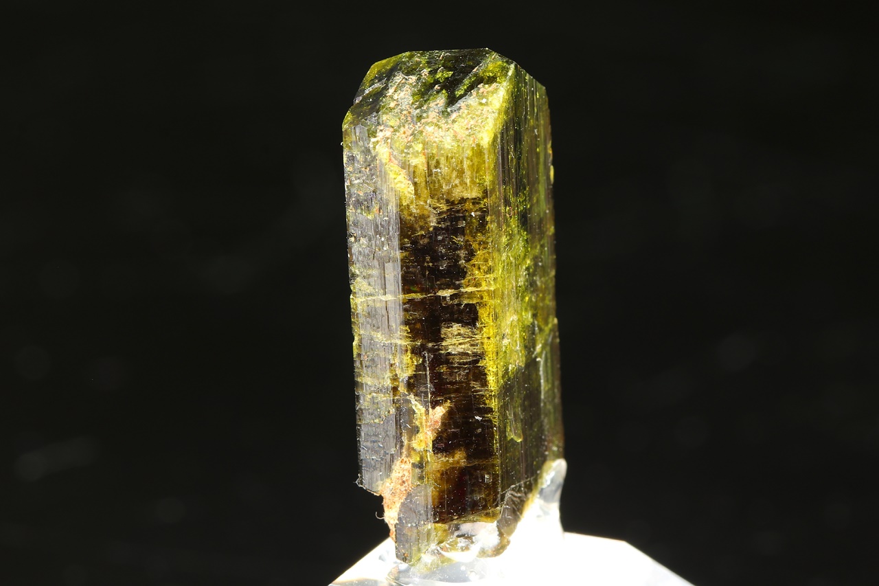 Deep green, shiny epidote crystal from the well-known Jeseník locality.