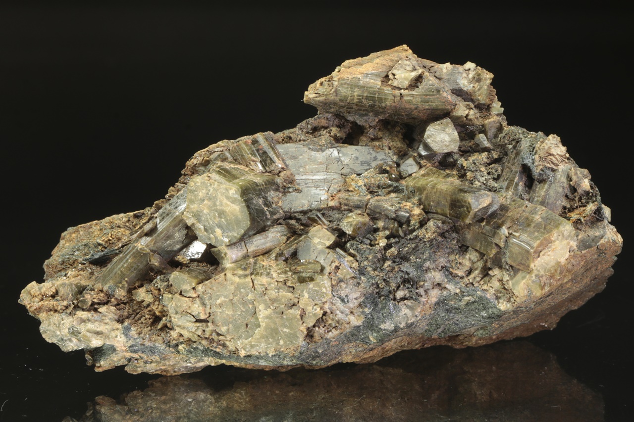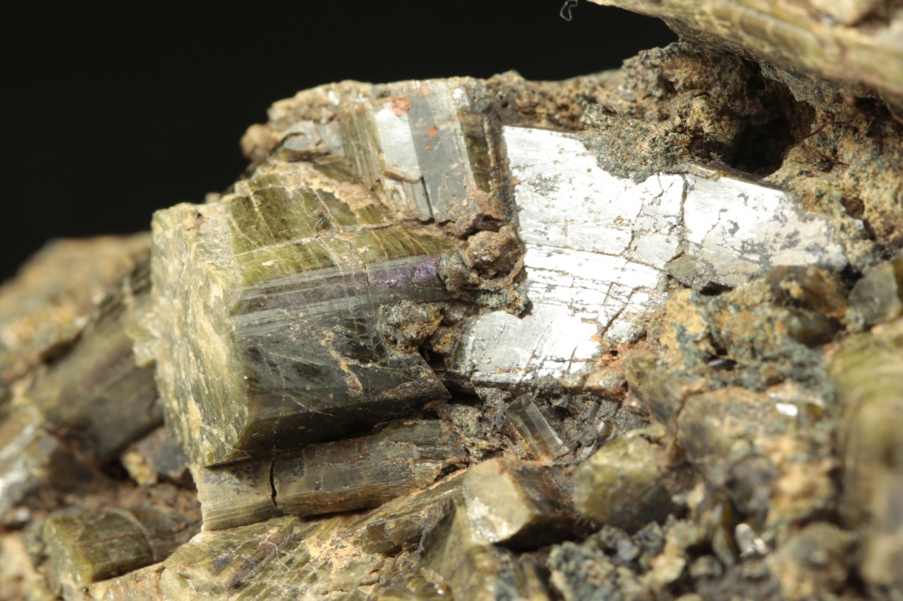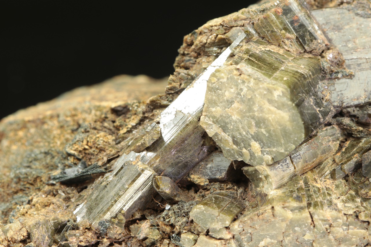 Epidote crystals up to three centimeters large, olive-green in color, grown into a cavity.