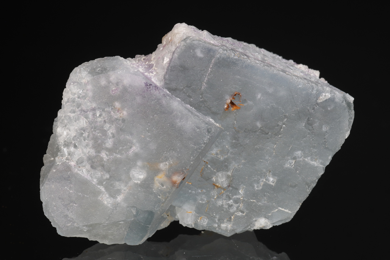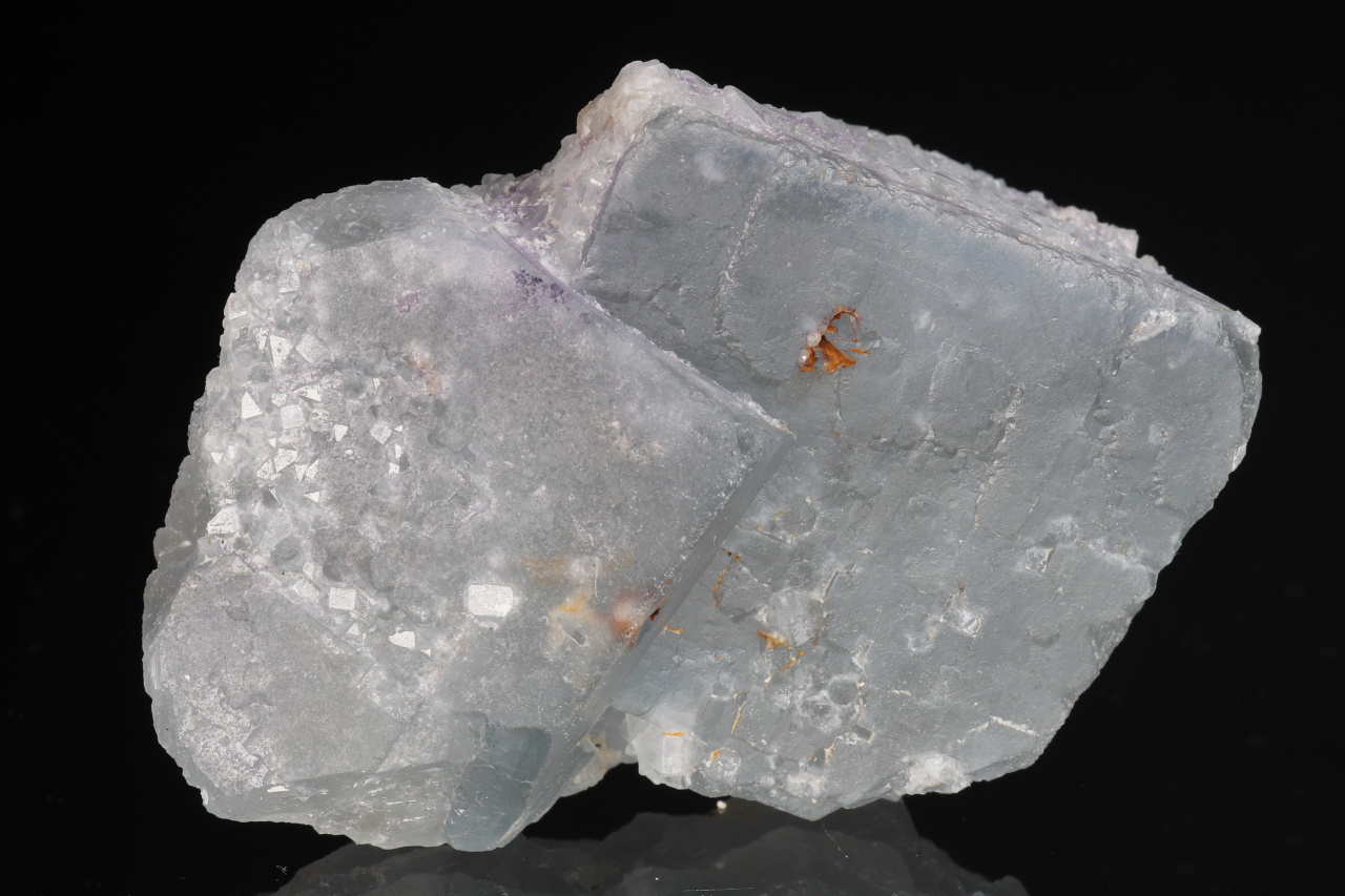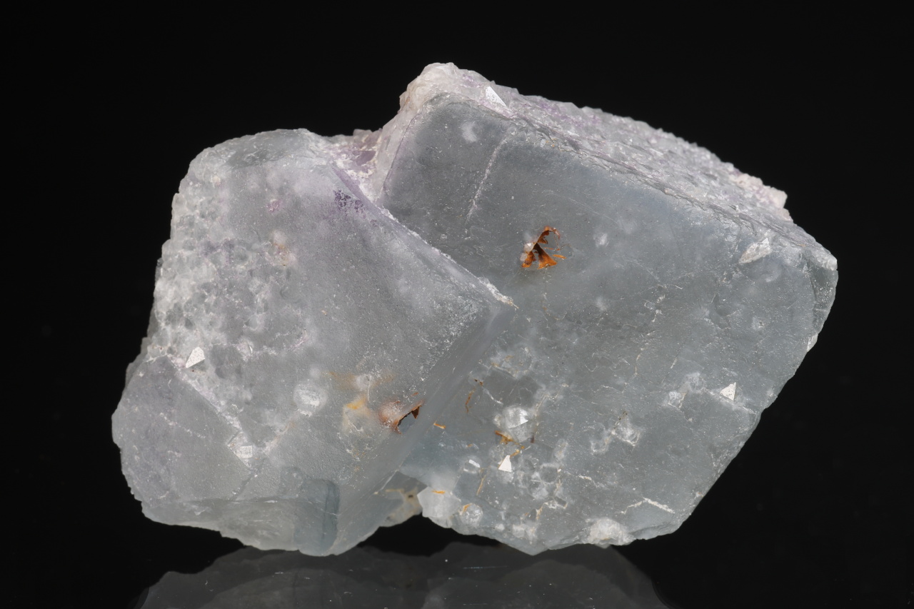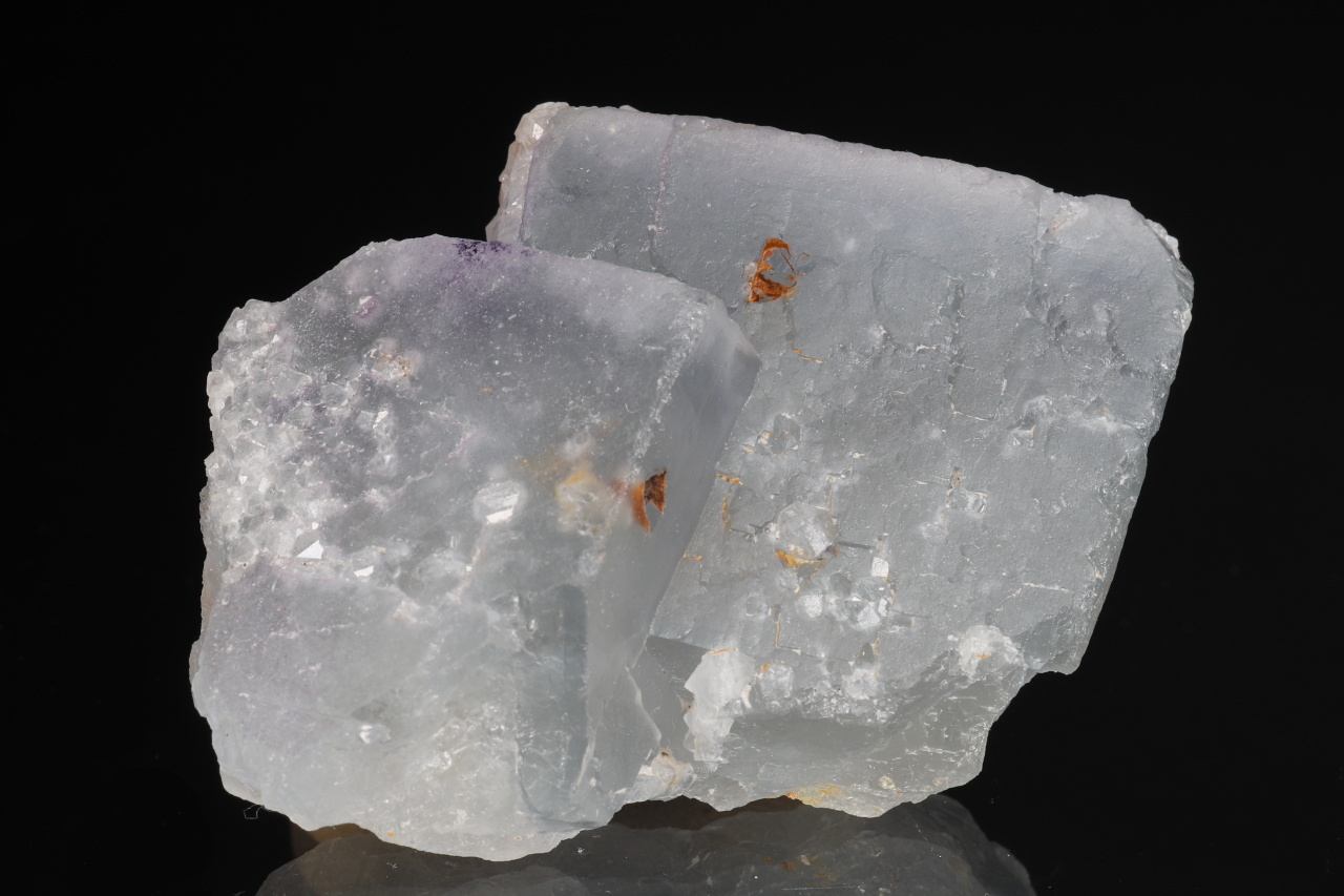 Free cluster of two bluish cubic crystals of fluorite with the largest edge of 33 mm. The sample comes from historical finds at the fluorite-barite deposit Harrachov in the Krkonoše Mountains.