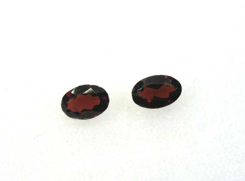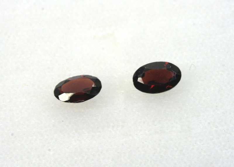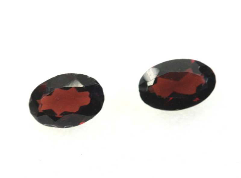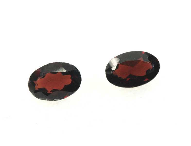 Very nice pair of two oval-cut garnet-almandines from Madagascar; size of stones: 5.7×3.8×2.1 mm, weight: 0.075 g, both together: 0.76 ct.