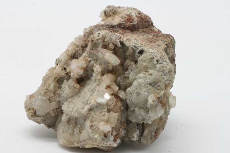 Specimen of zeolites from the Votrubec Quarry near Kozákov. The largest heulandite crystal is 9 mm. The specimen dates from the year 1976.