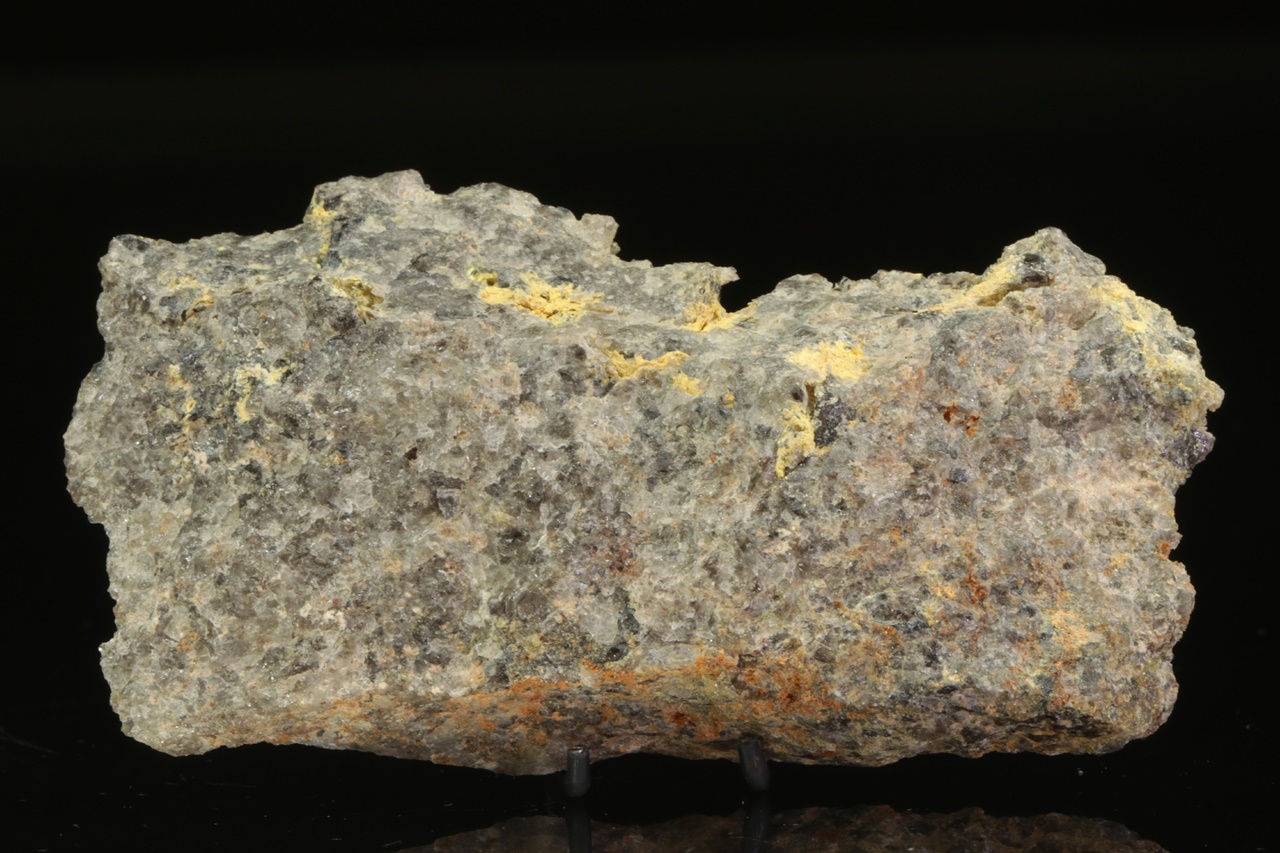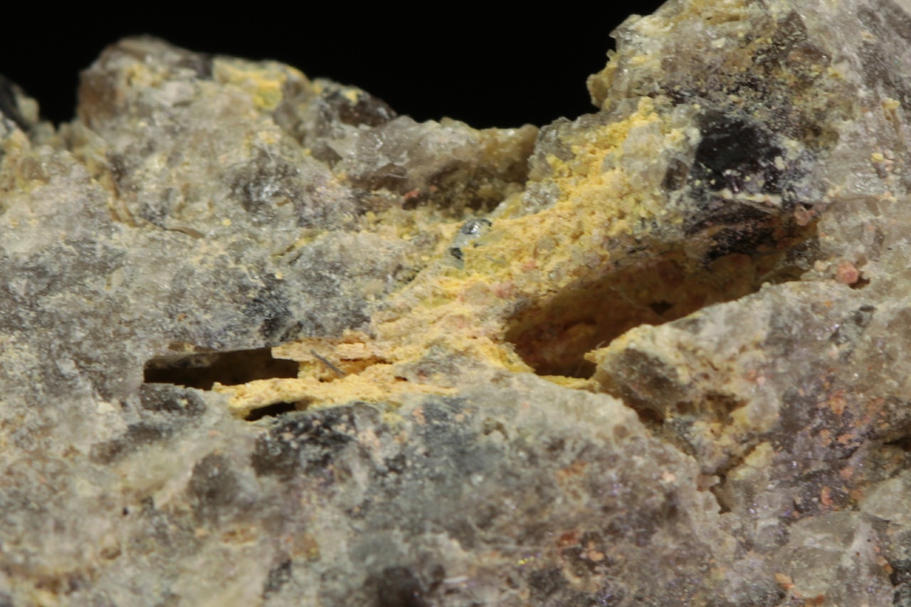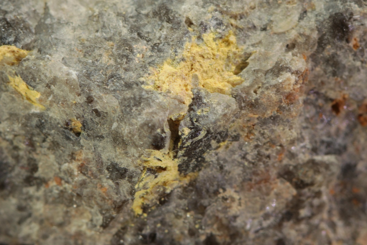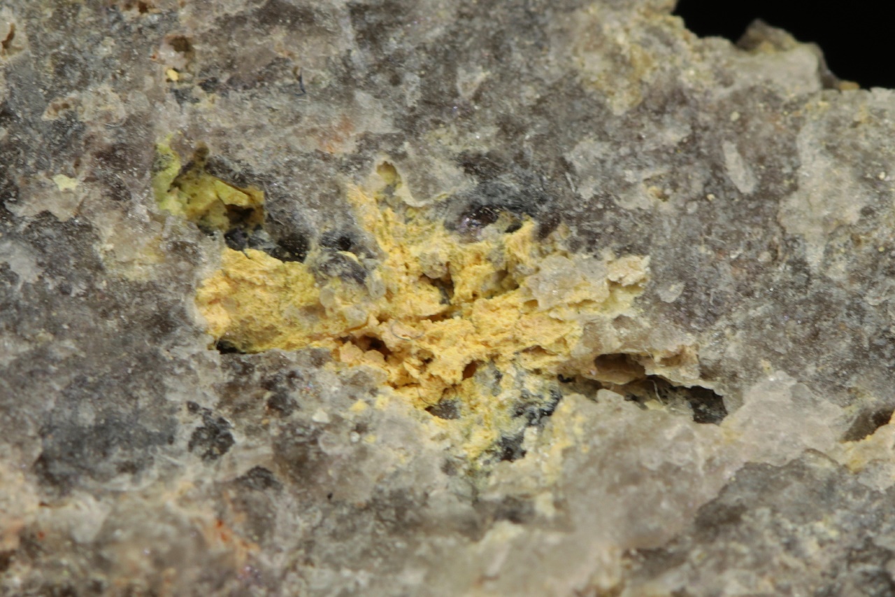 Yellow, needle-like crystals of molybdenum and bismuth oxide from Horní Slavkov. The largest aggregate is 7 mm in size.