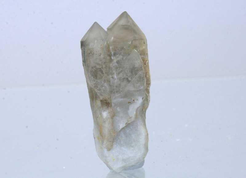Specimen of a cluster of three crystals from the locality Sklenné nad Oslavou. Specimen of a triplet of inconspicuously brown smoky quartz from the Czech-Moravian Highlands.