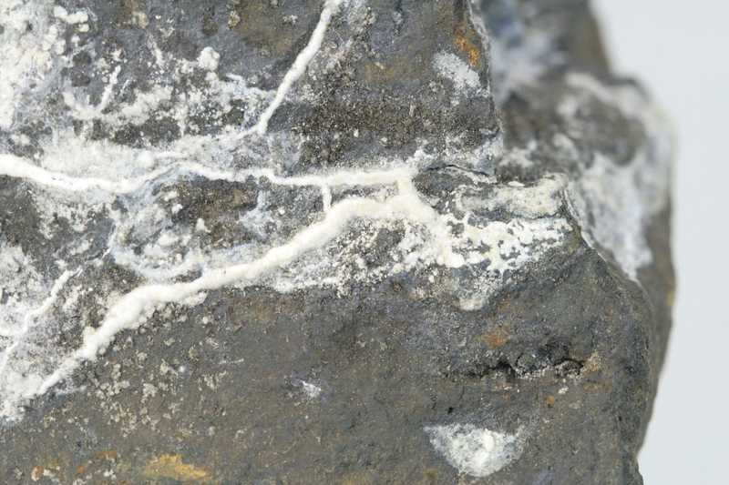 A rich specimen of the uncommon secondary zinc carbonate brianyoungite from the Lill mine in Příbram. A nice specimen of developed vein crusts and coatings of white brianyoungite from the Příbram mining district.
