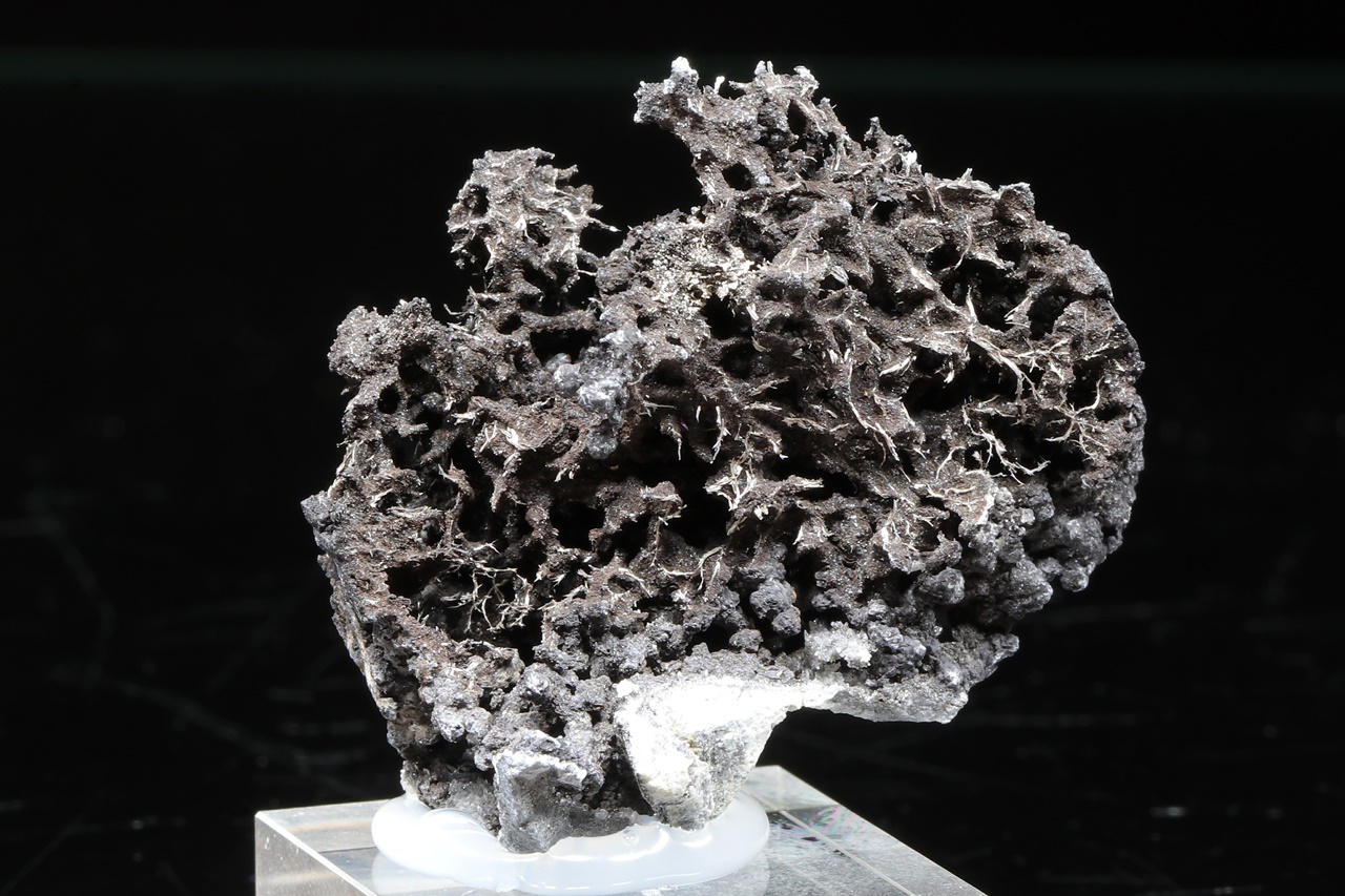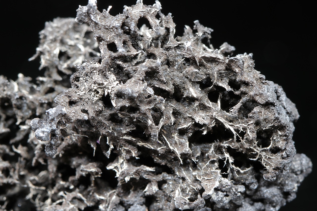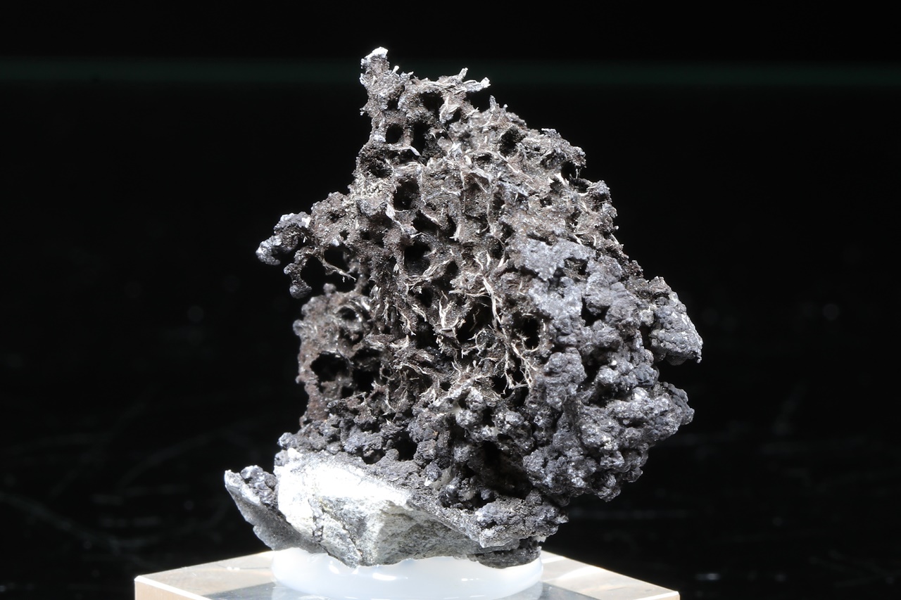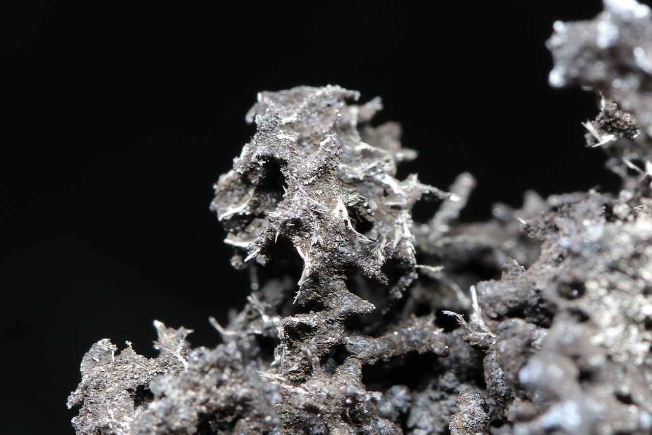 Wire-like crystals of metallic lustrous Dyskrazit growing on black Arsen. The sample can only be picked up in person at our store.