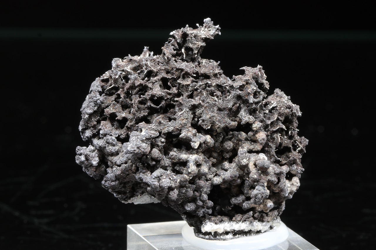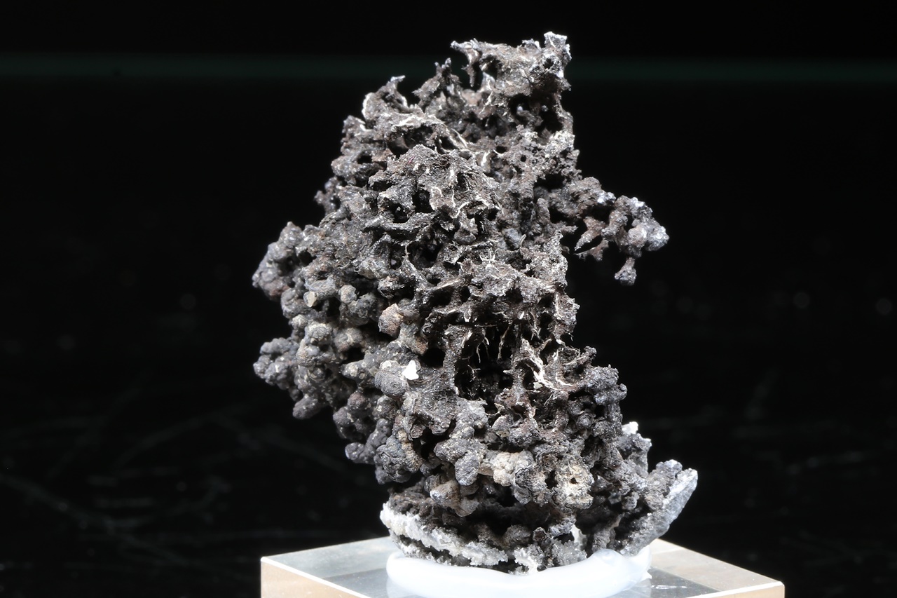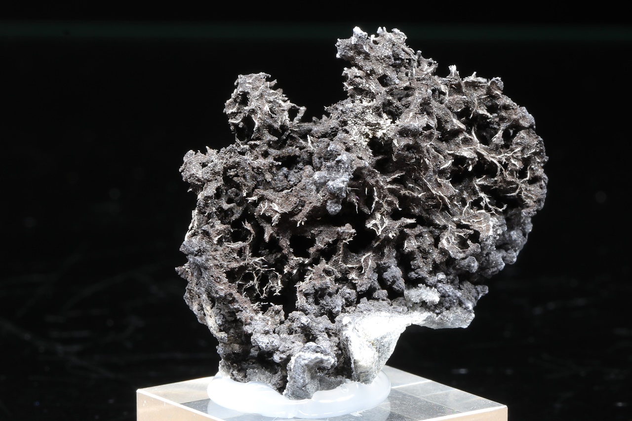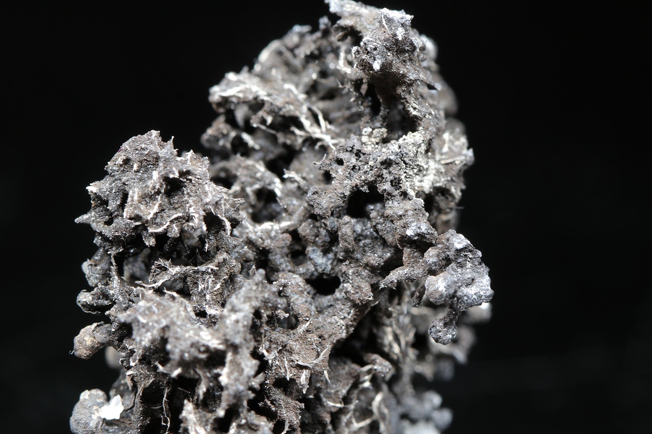 Wire-like crystals of metallic lustrous Dyskrazit growing on black Arsen. The sample can only be picked up in person at our store.