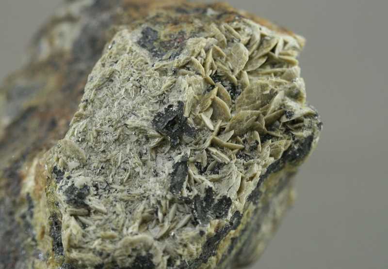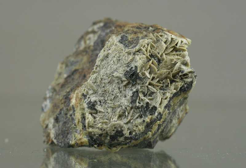 An interesting specimen of löllingite from the Lill mine, Příbram. A specimen of silver-gray lustrous löllingite dust on crystals of siderite.