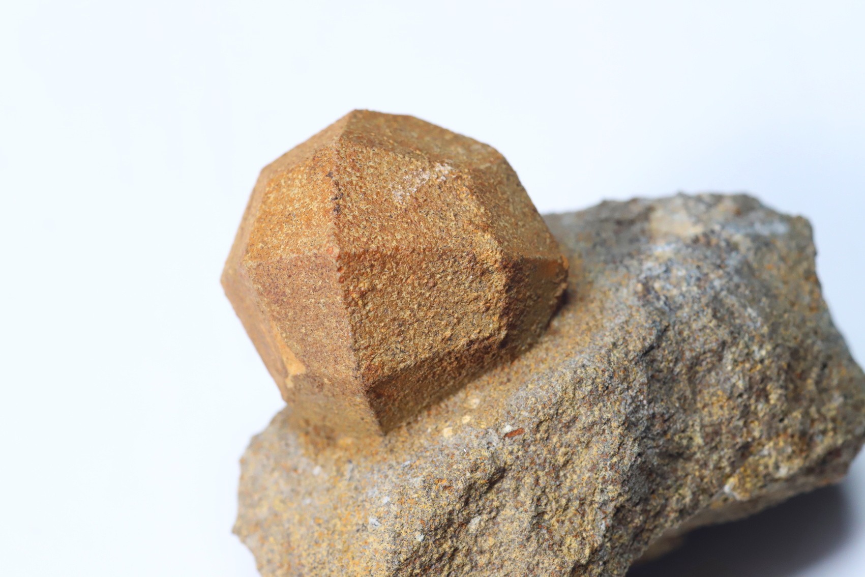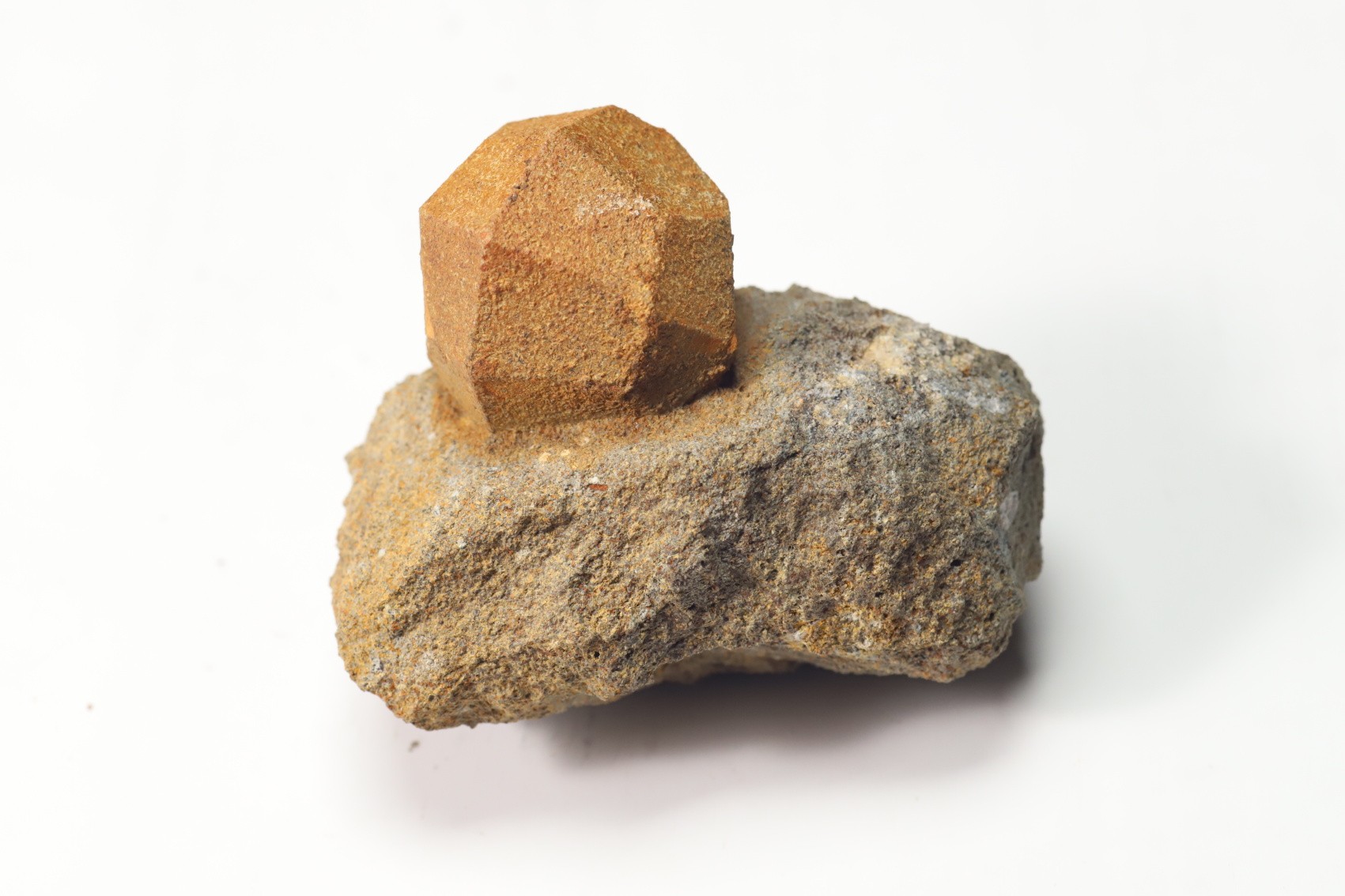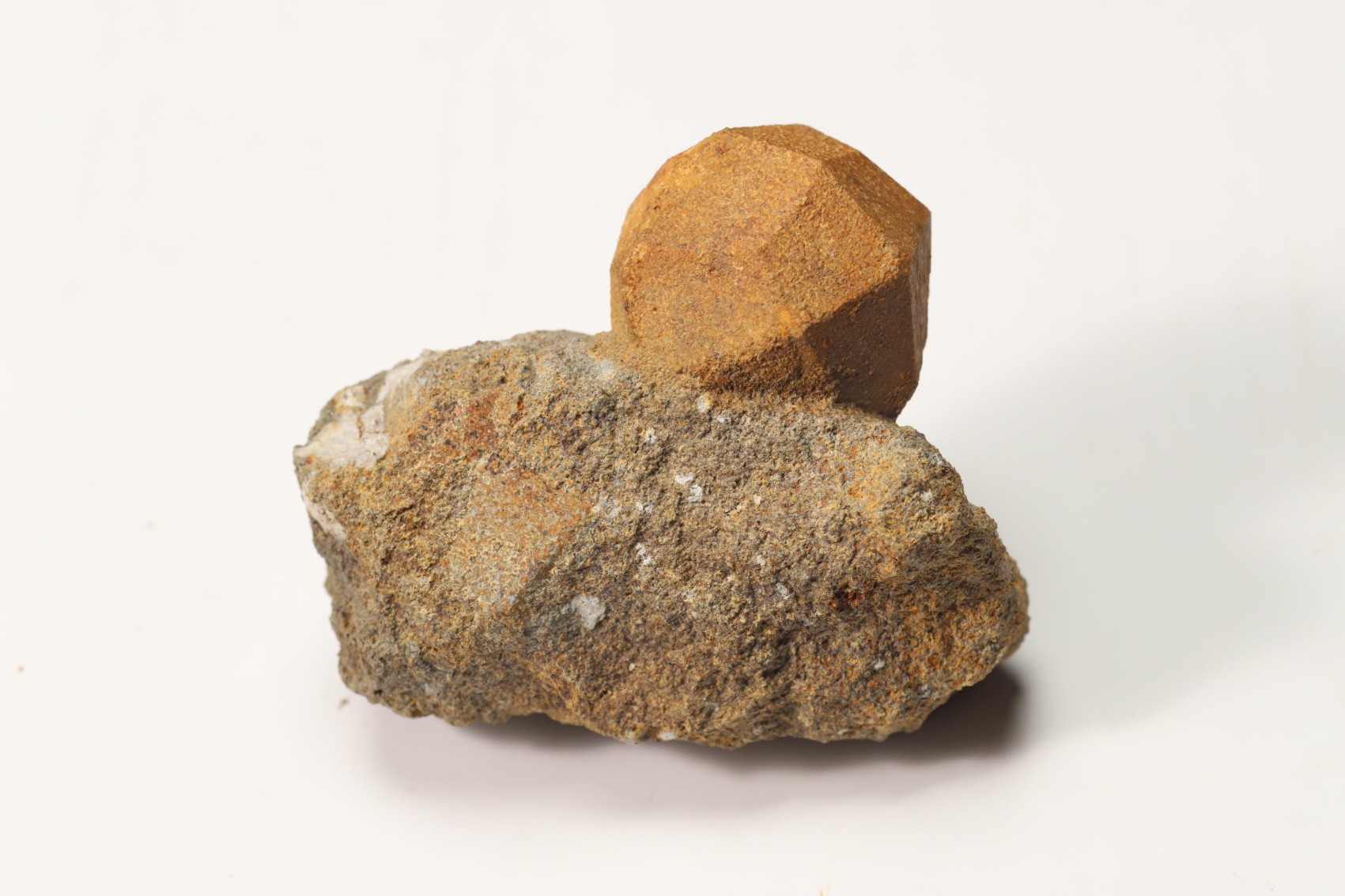 A perfectly defined, prepared pseudoleucite crystal on a backing. The specimen comes from the classic Loučná pod Klínovcem deposit in the Ore Mountains, where preparations for development are currently underway.