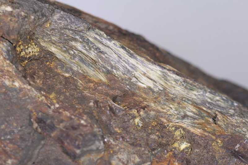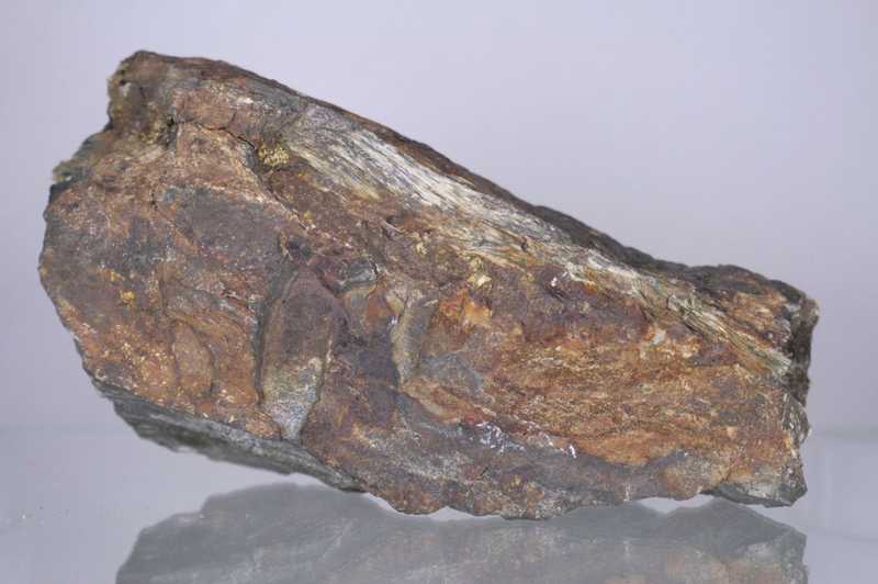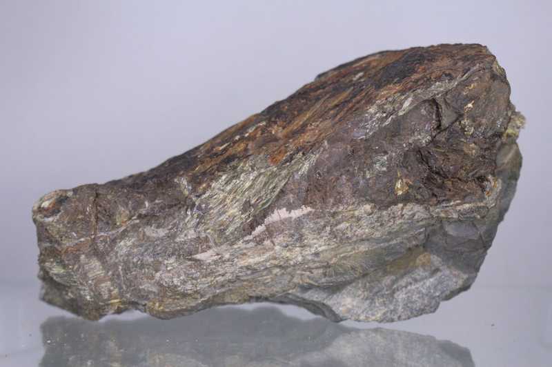 A rich specimen of manganese-rich minerals from the classic locality Chvaletice. A large specimen composed partially of massive red pyroxmangite, into which large fibrous aggregates of manganese-rich cummingtonite grow.