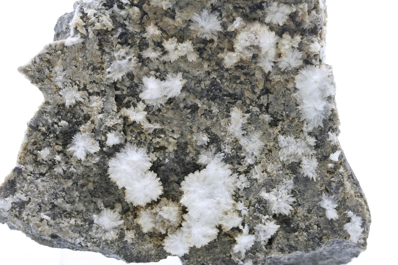 White strontium carbonate suns up to 7 mm in size.