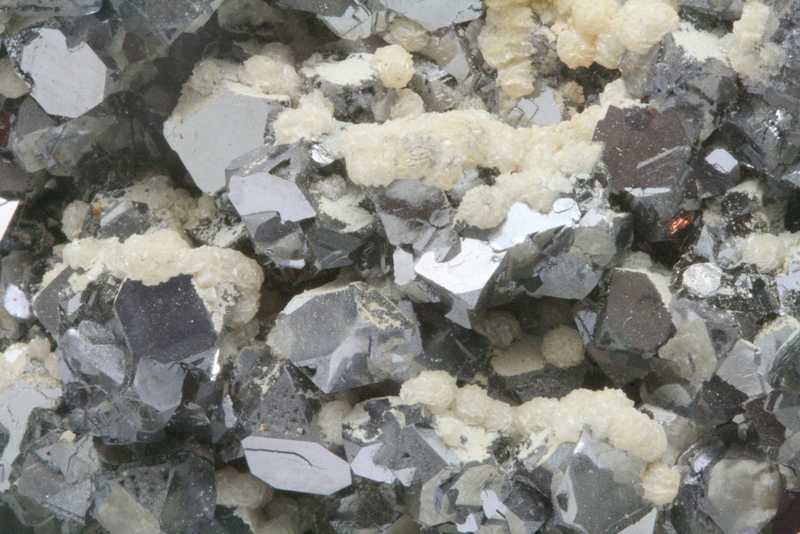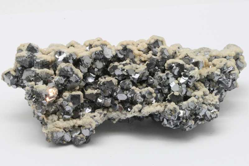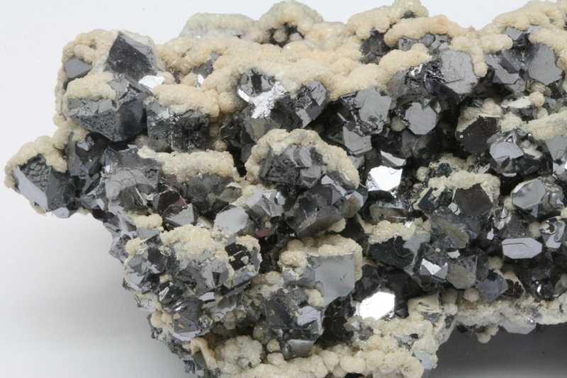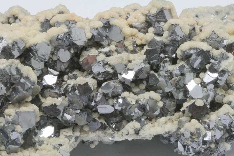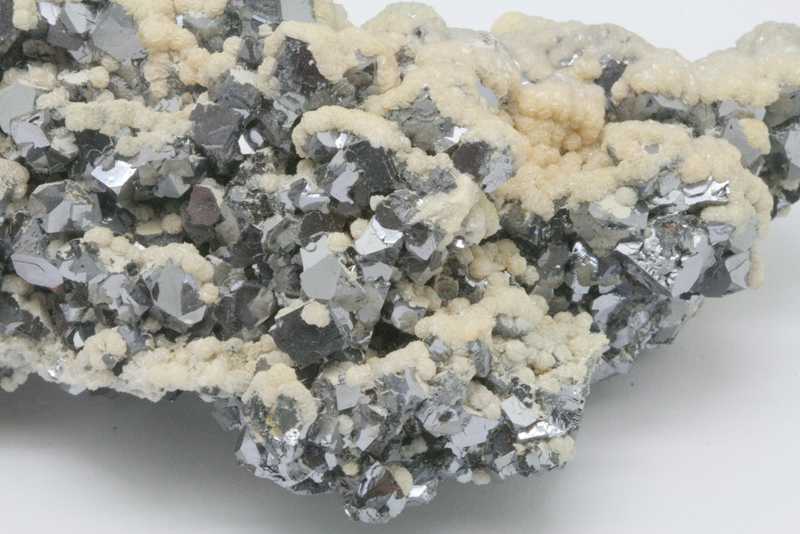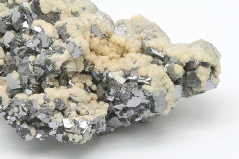 Drůza s krystaly galenitu o velikosti až 10 mm porostlými dolomitem. Nádherná ukázka vysoce lesklého galenitu z Bulharského madanu.