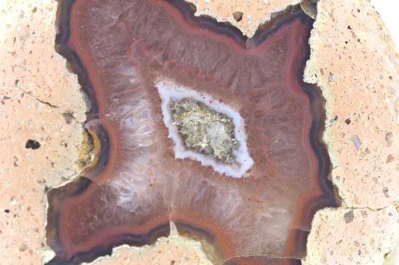 Classic specimen of an attractive agate from the St. Egidien locality. A very nice specimen of an agate “star” in rhyolite from Germany.