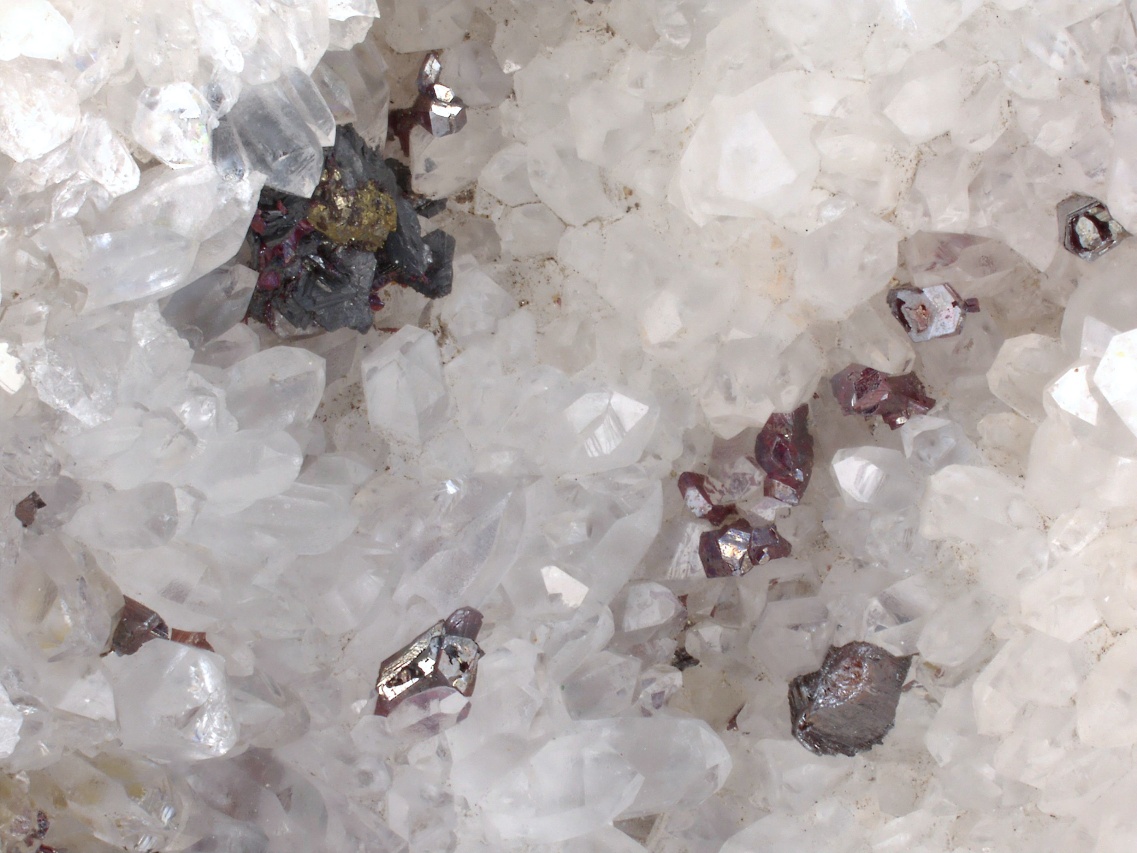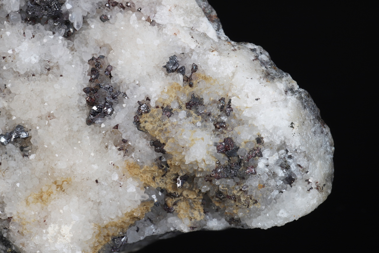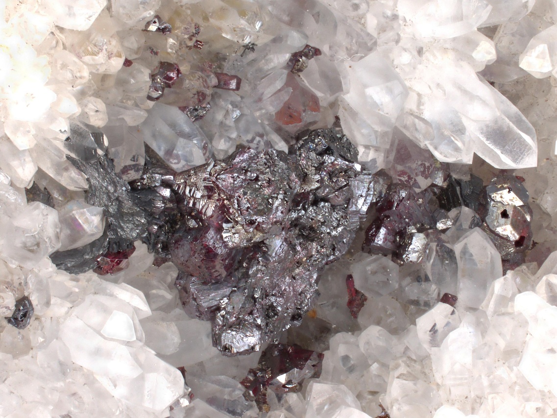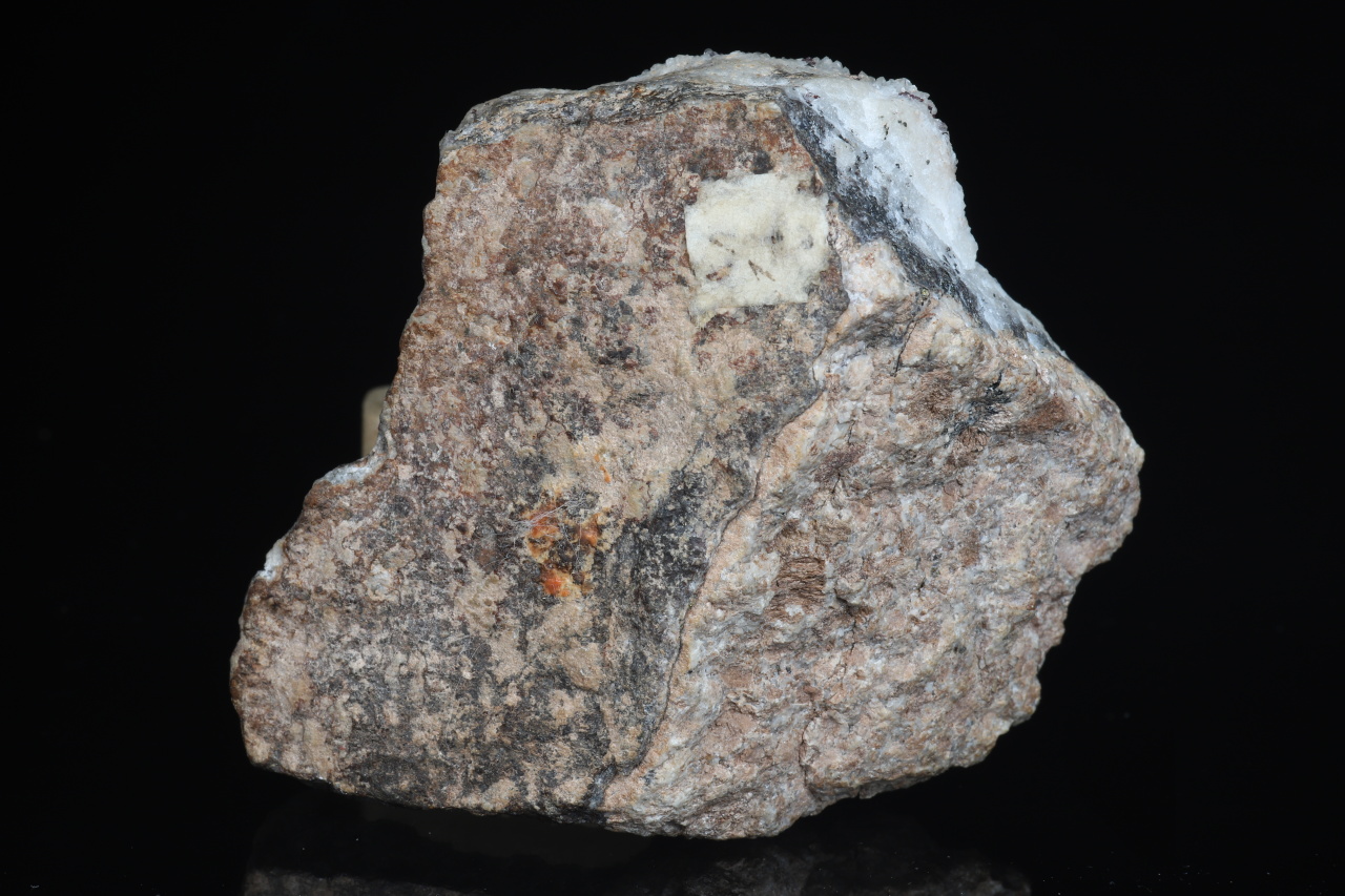 A historically very rich sample of silver minerals from the famous Freiberg deposit. The sample contains numerous perfectly terminated crystals and grains of pyrargyrite, about 2-3 mm in size, with flat steel gray crystals of polybasite and especially with the rare xanthocon. Xanthocon forms tiny, roughly 1 mm large, glossy orange crystals, of which there are at least 8 throughout the sample. The Freiberg area is a type locality for xanthocon.