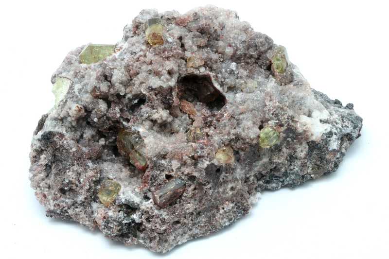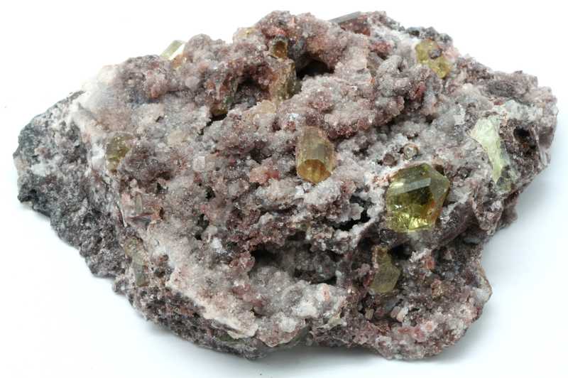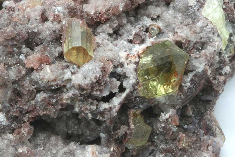 Sample of intensely colored apatite from Mexico, up to 13 mm in size. Greenish-yellow, lustrous apatite crystals that grow into the substrate.