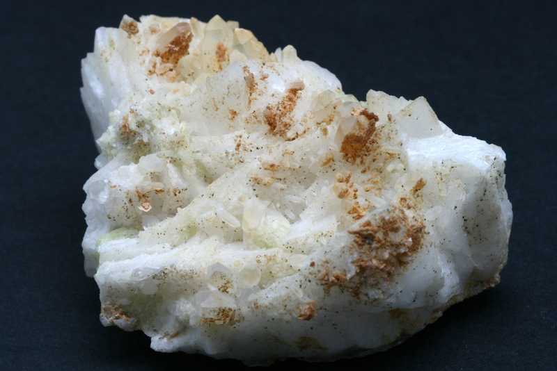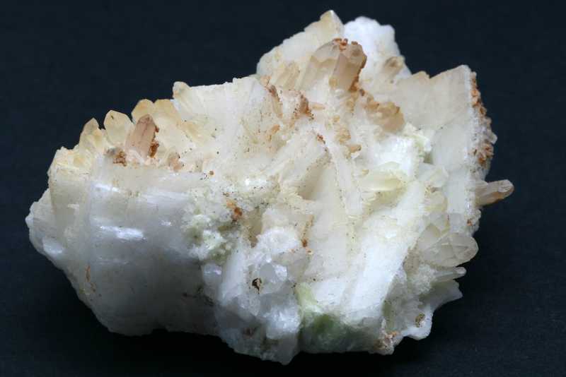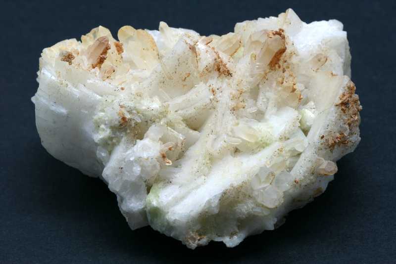 A specimen of beryllium silicate among rock crystal crystals. A sample of green milarite crystals up to 9 mm in size.
