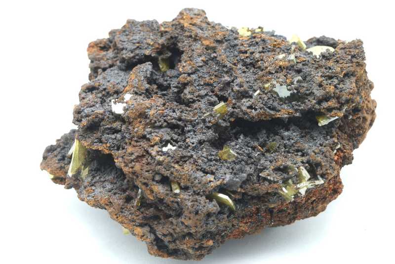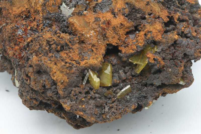 Quality sample of undamaged shiny wulfenite crystals up to 11 mm. An example of highly shiny yellow-orange wulfenite crystals.