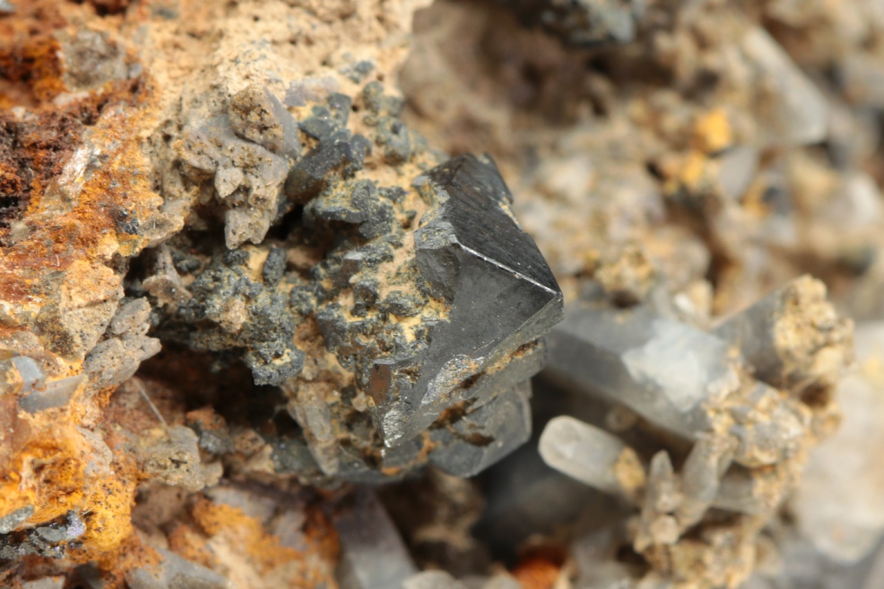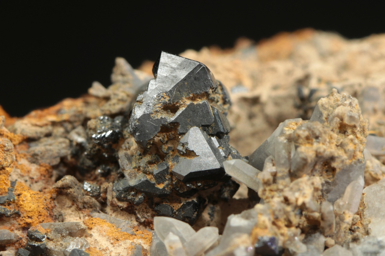 Srostlice krystalů černého brookitu s habitem charakteristickým pro tuto lokalitu. Velikost srostlice je 9 mm.