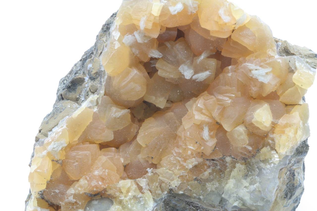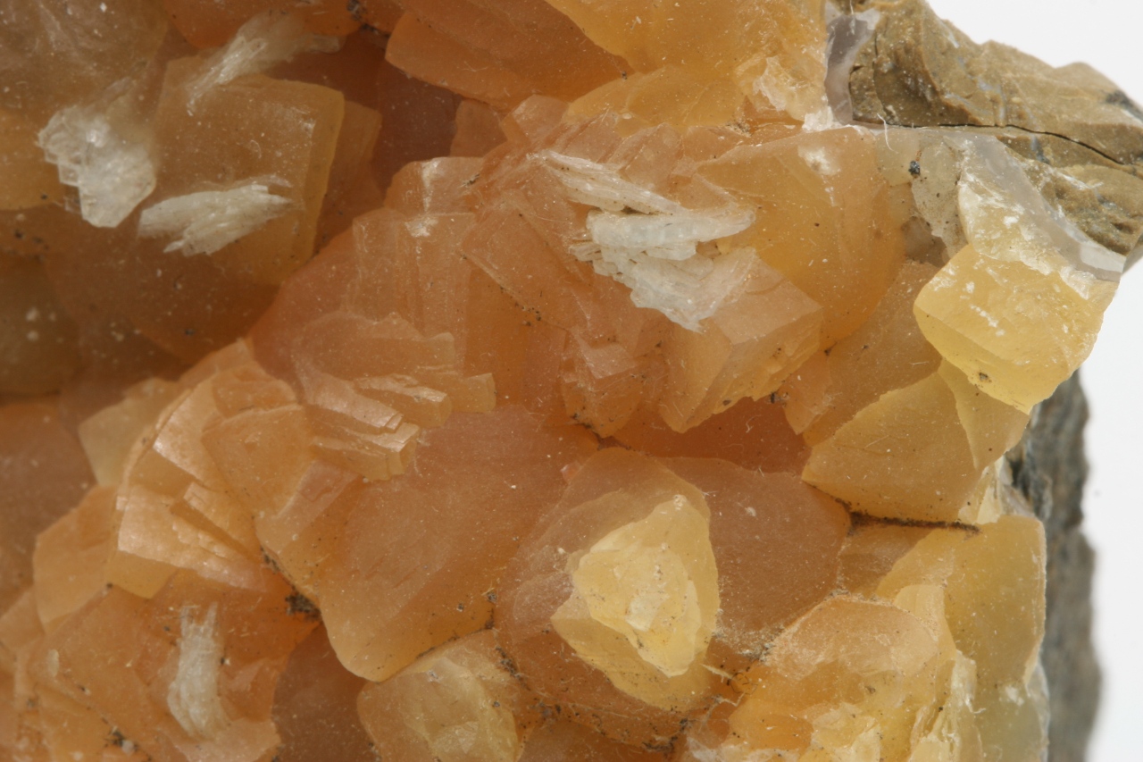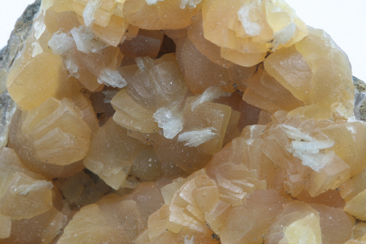 Yellow calcite crystals with white tabular baryte.
