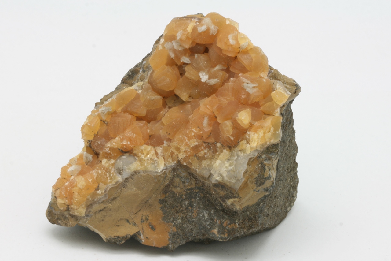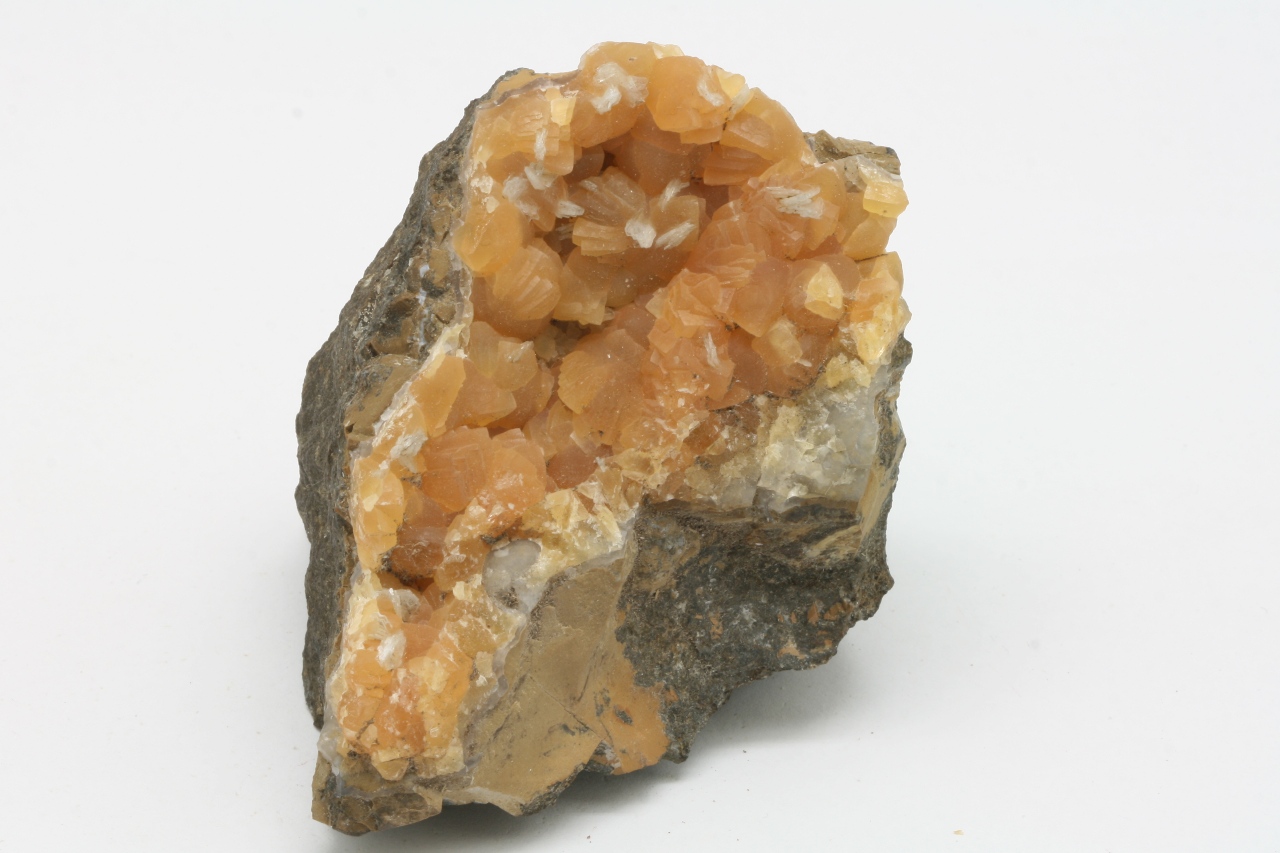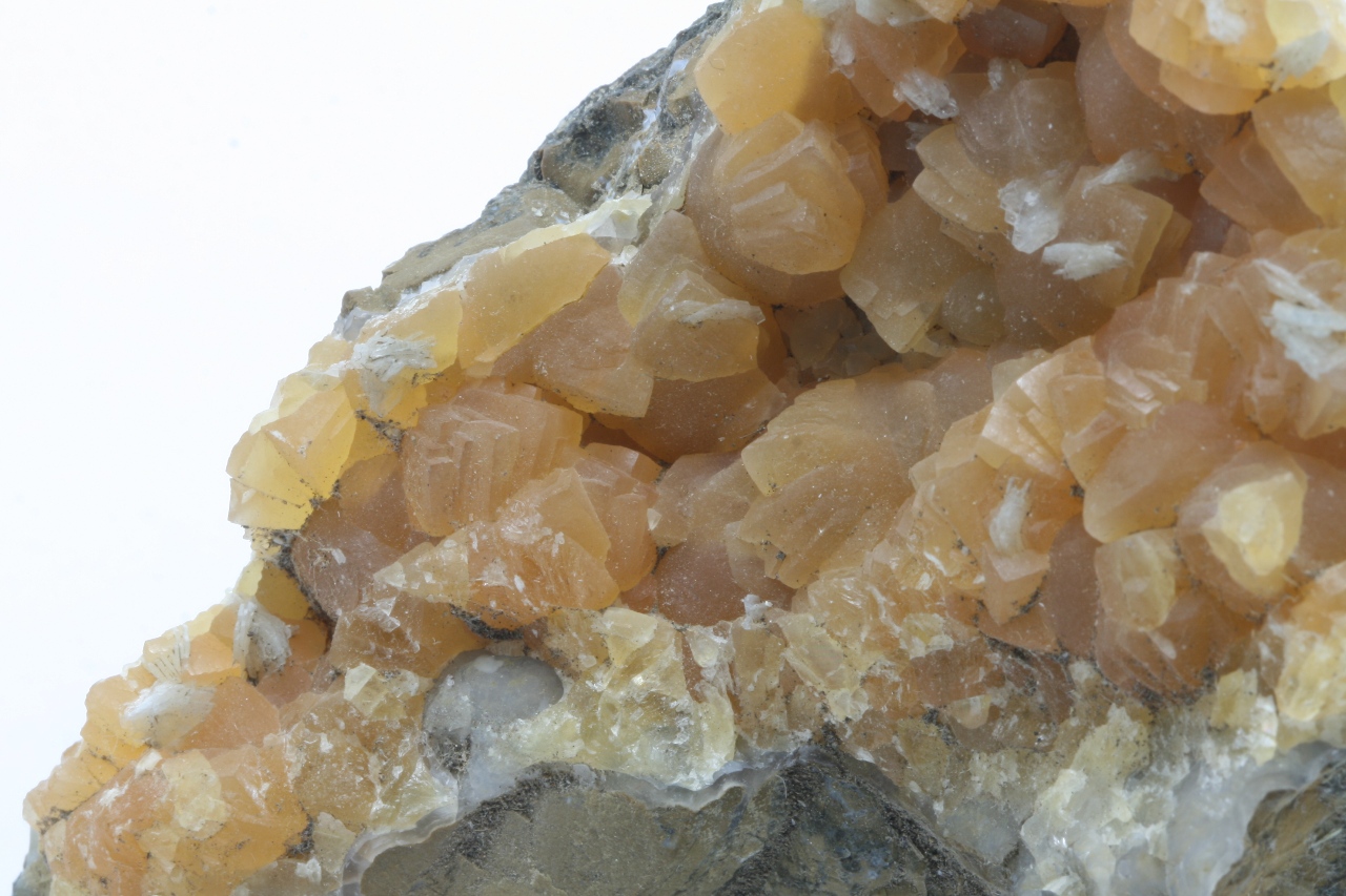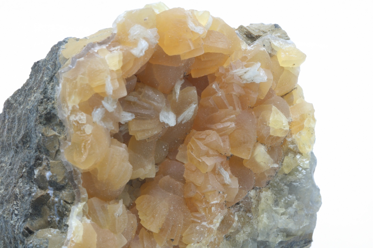 Yellow calcite crystals with white tabular baryte.