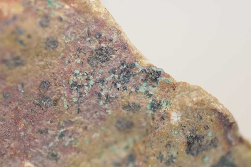 Specimen of the relatively rare copper arsenate mineral clinoclase from a classic Slovak locality. A rich specimen of small crystal crusts and solitary crystals of blue-green to dark green clinoclase.