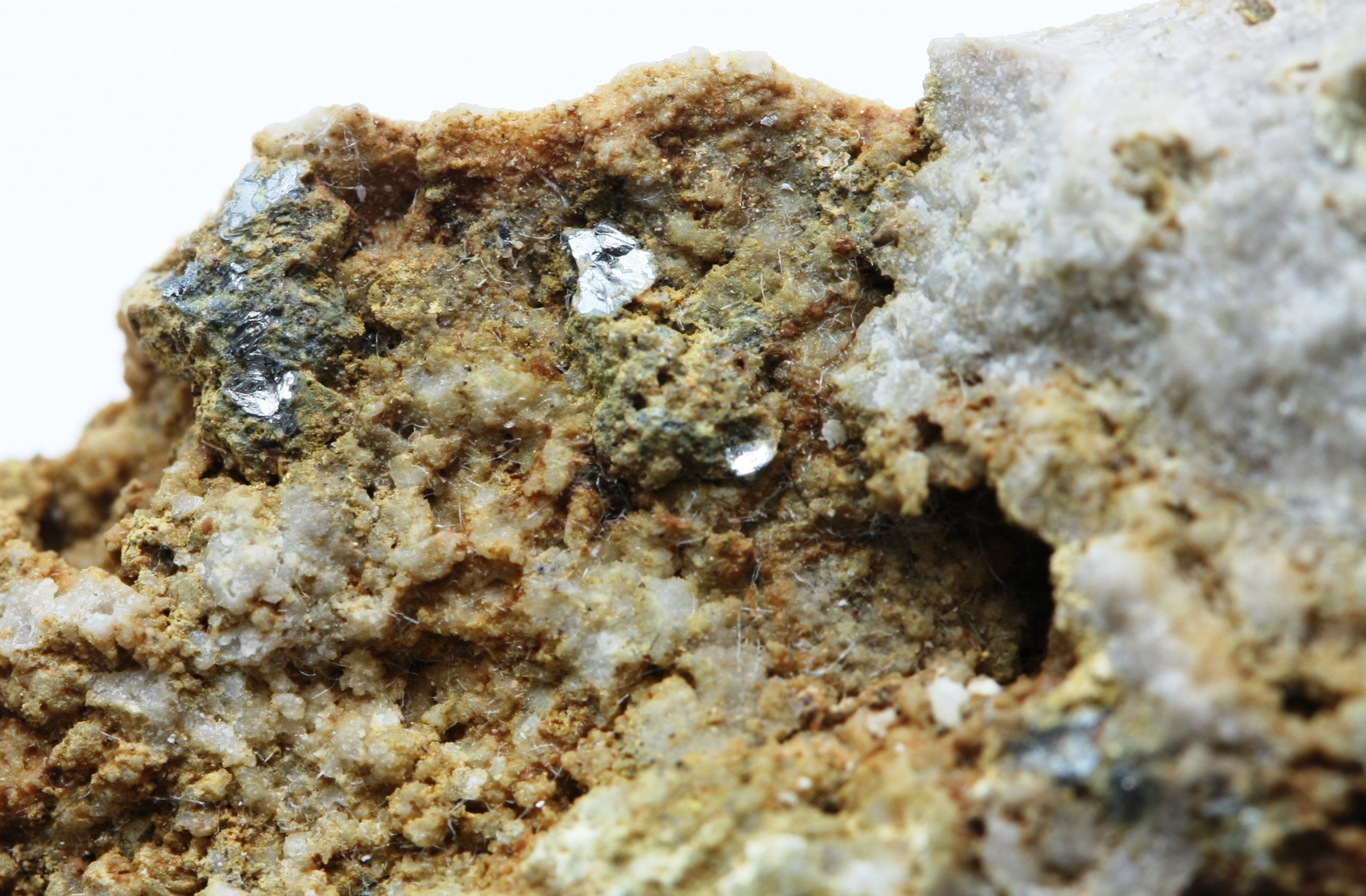 Beautiful example of rare greyish metal-glossy crystals of tellurium and bismuth sulfide tetradymite