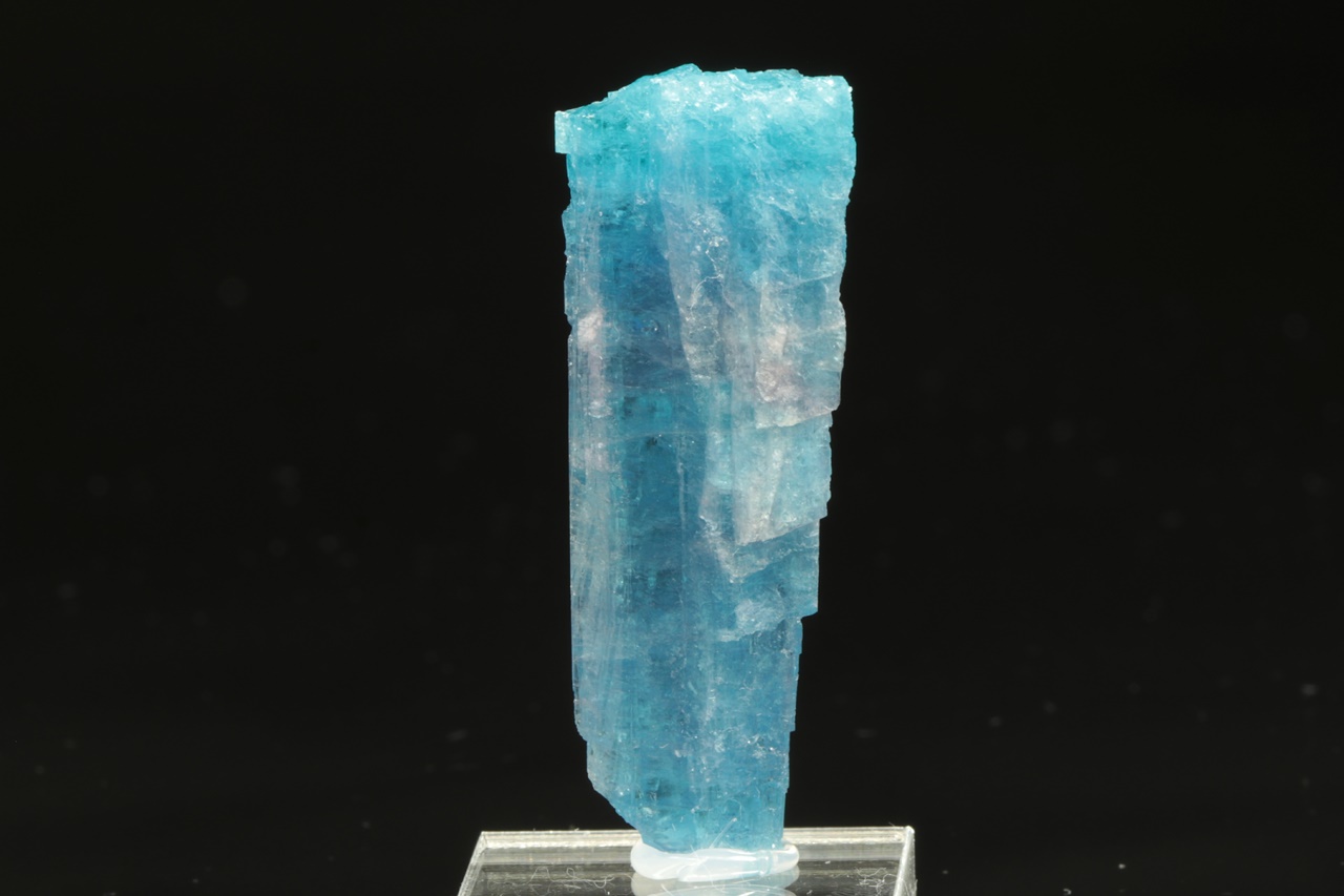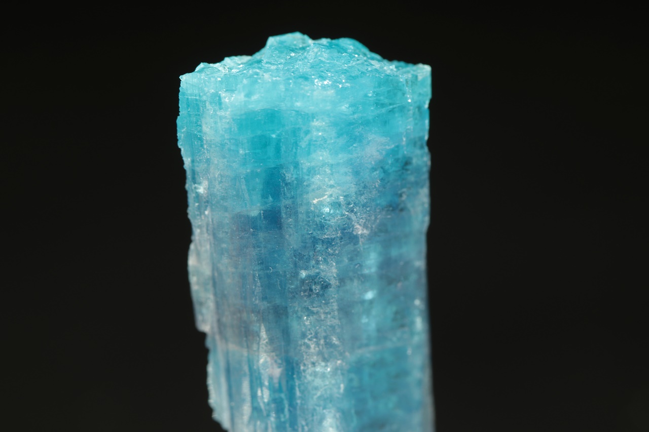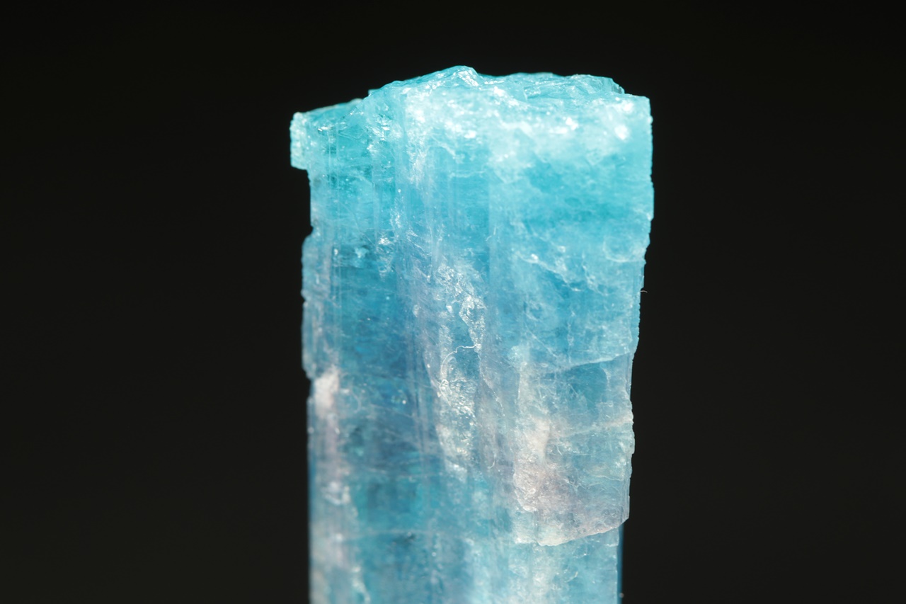 Nádherný segment krystalu turmalínu intenzivně modré barvy ve velmi vysoké brousitelné kvalitě. Tento typ vzácného turmalínu, u kterého je modrá barva způsobena přitomností mědi v krystalové struktuře, se zřídkakdy vyskytuje v podobě průsvitného krystalu takto intenzivní barvy.