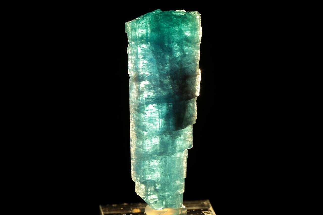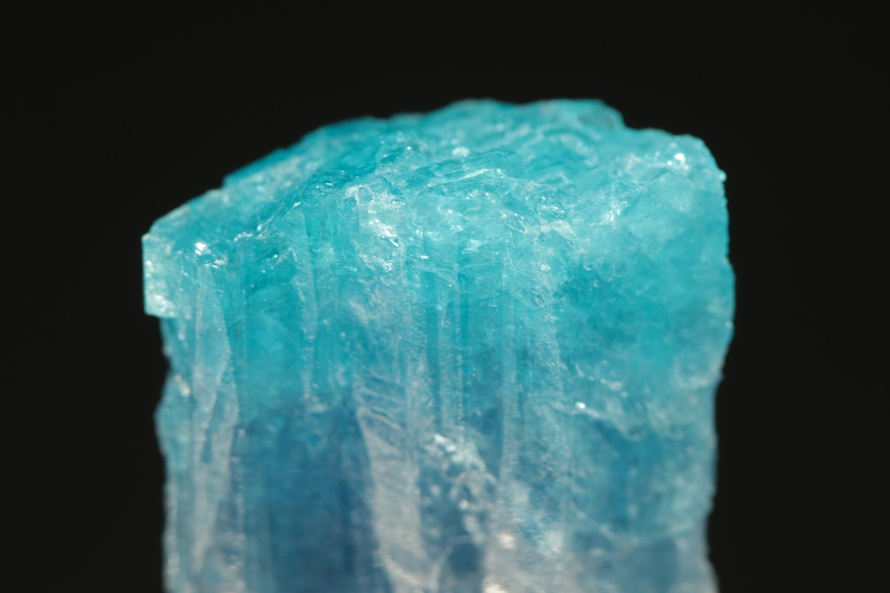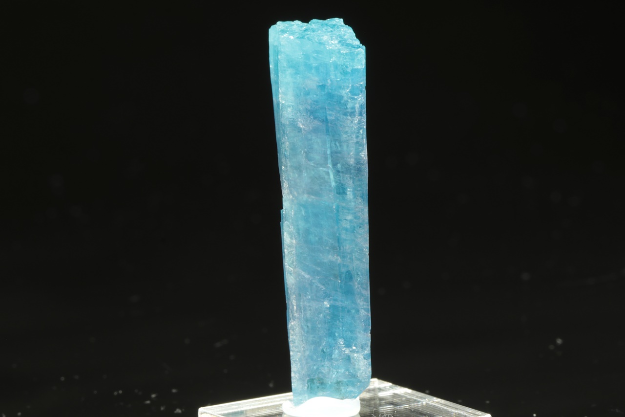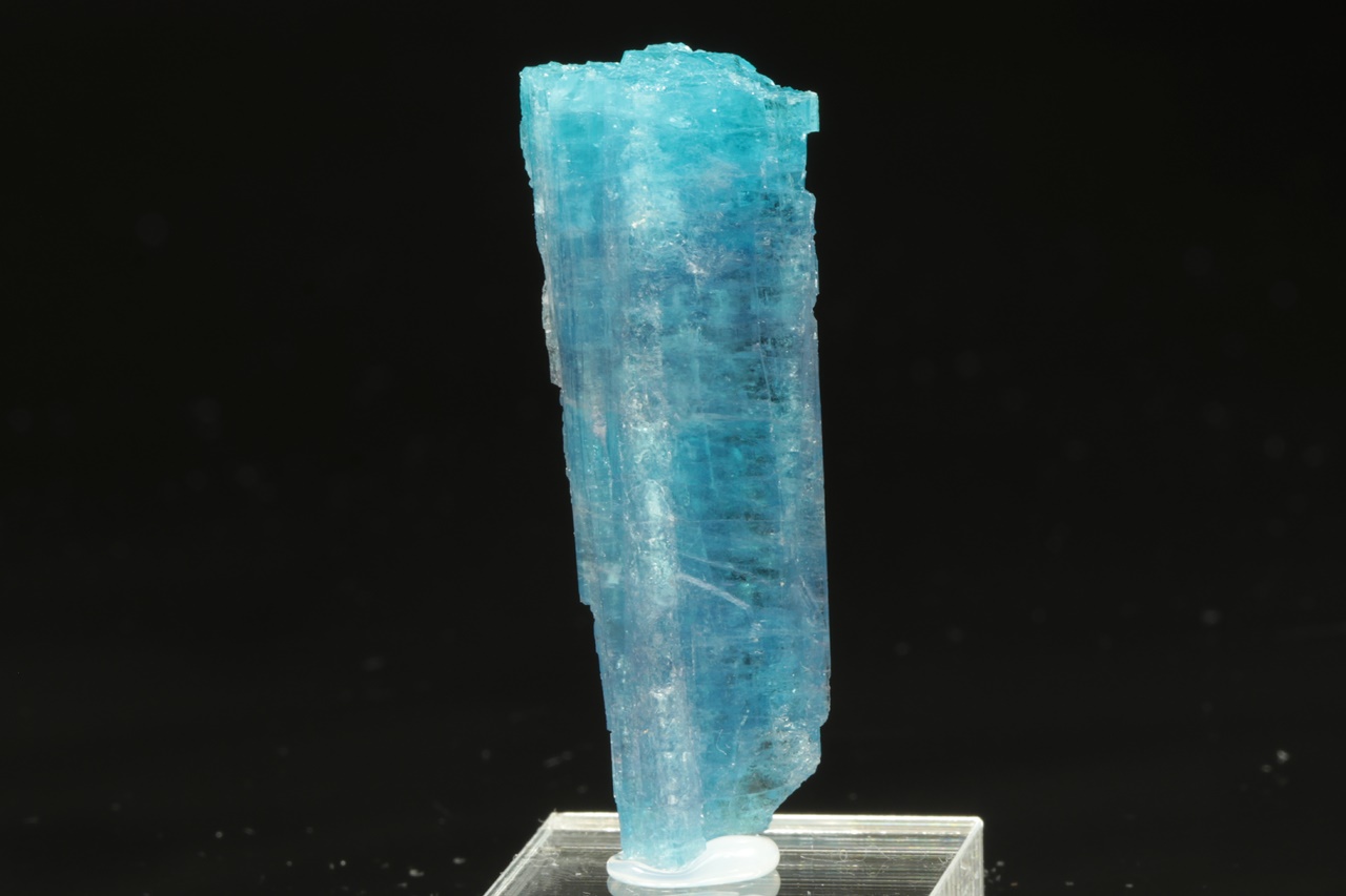 Nádherný segment krystalu turmalínu intenzivně modré barvy ve velmi vysoké brousitelné kvalitě. Tento typ vzácného turmalínu, u kterého je modrá barva způsobena přitomností mědi v krystalové struktuře, se zřídkakdy vyskytuje v podobě průsvitného krystalu takto intenzivní barvy.