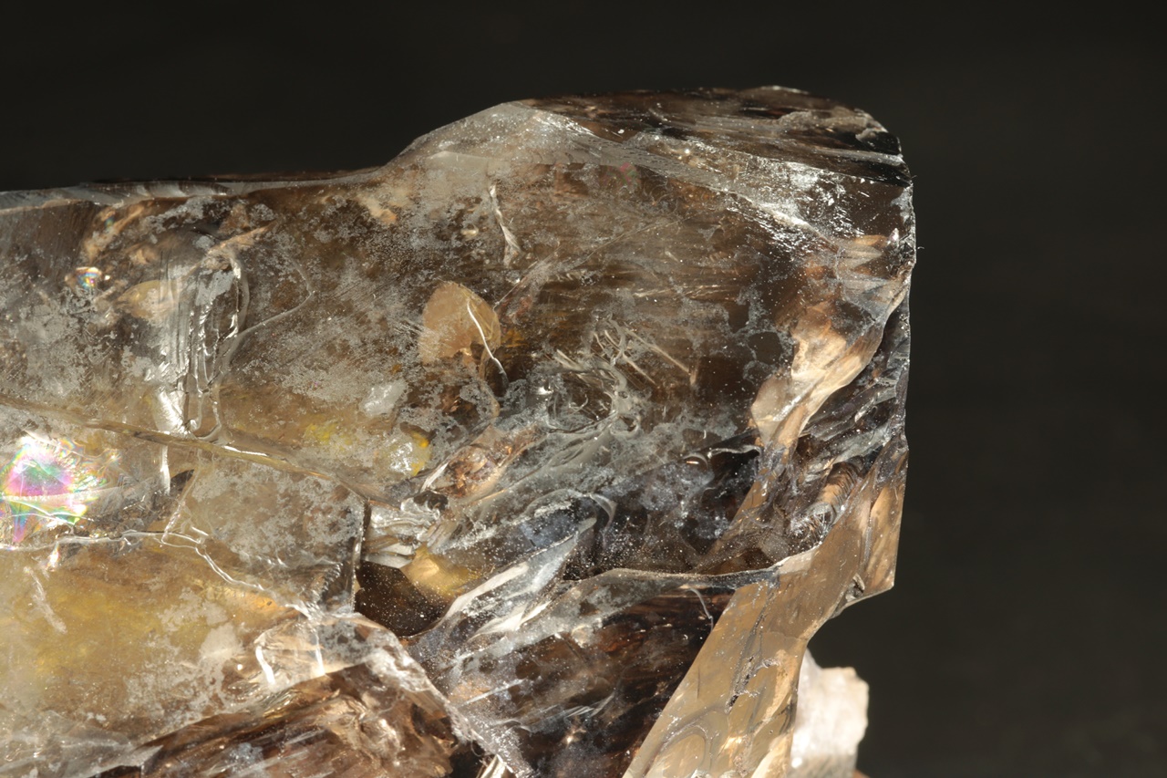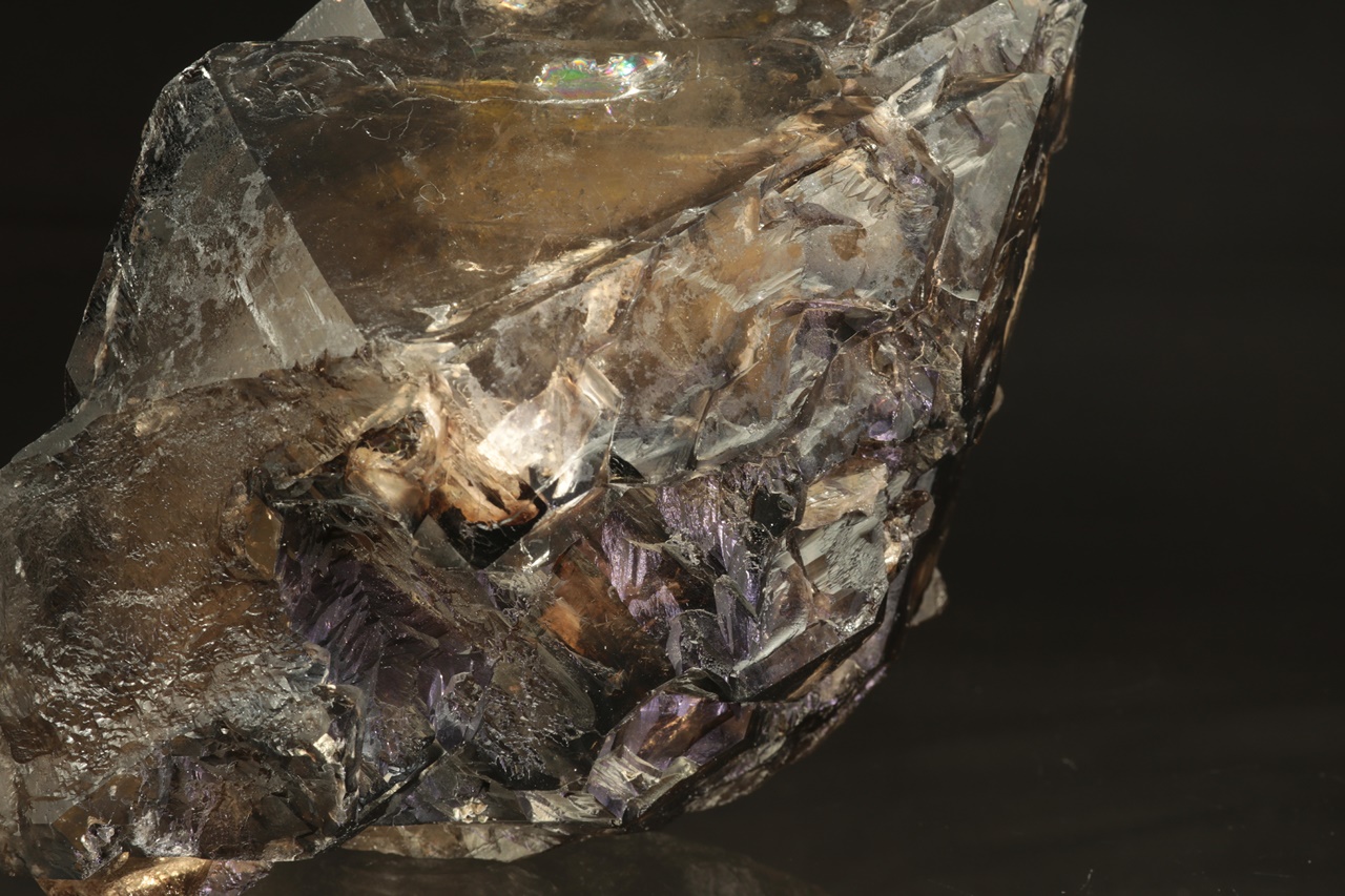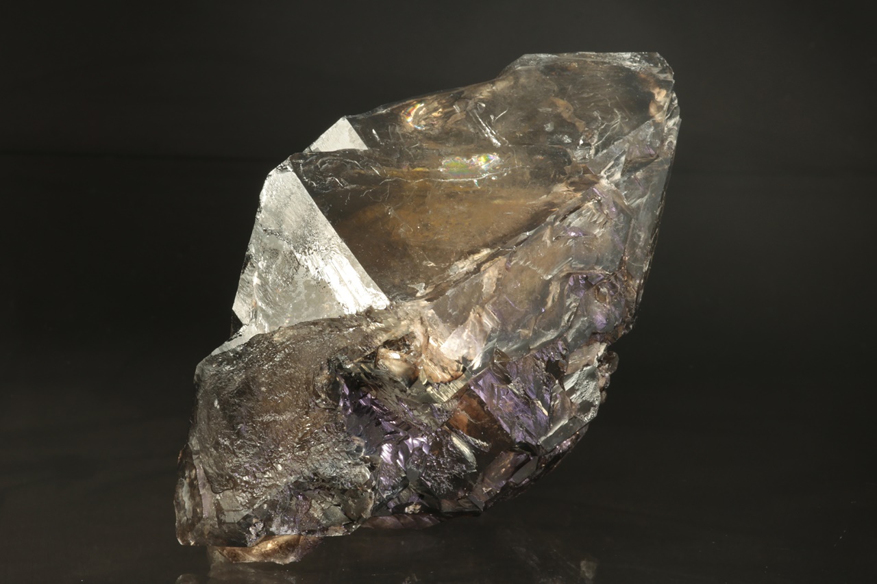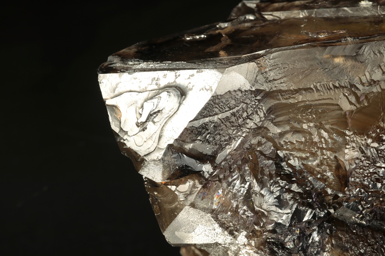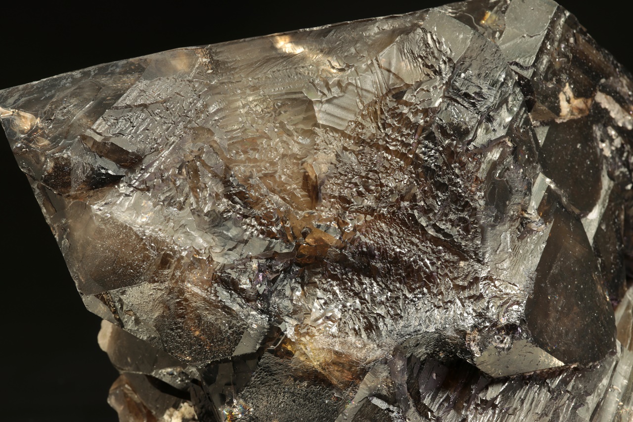 Velká hypoparalelní srotlice krystalů tmavé záhnědy. Srostlice je na několi místech přírodně dohojena.