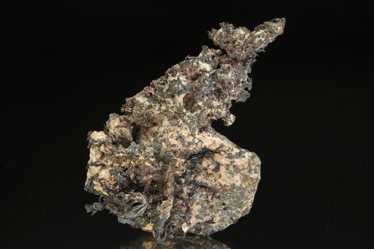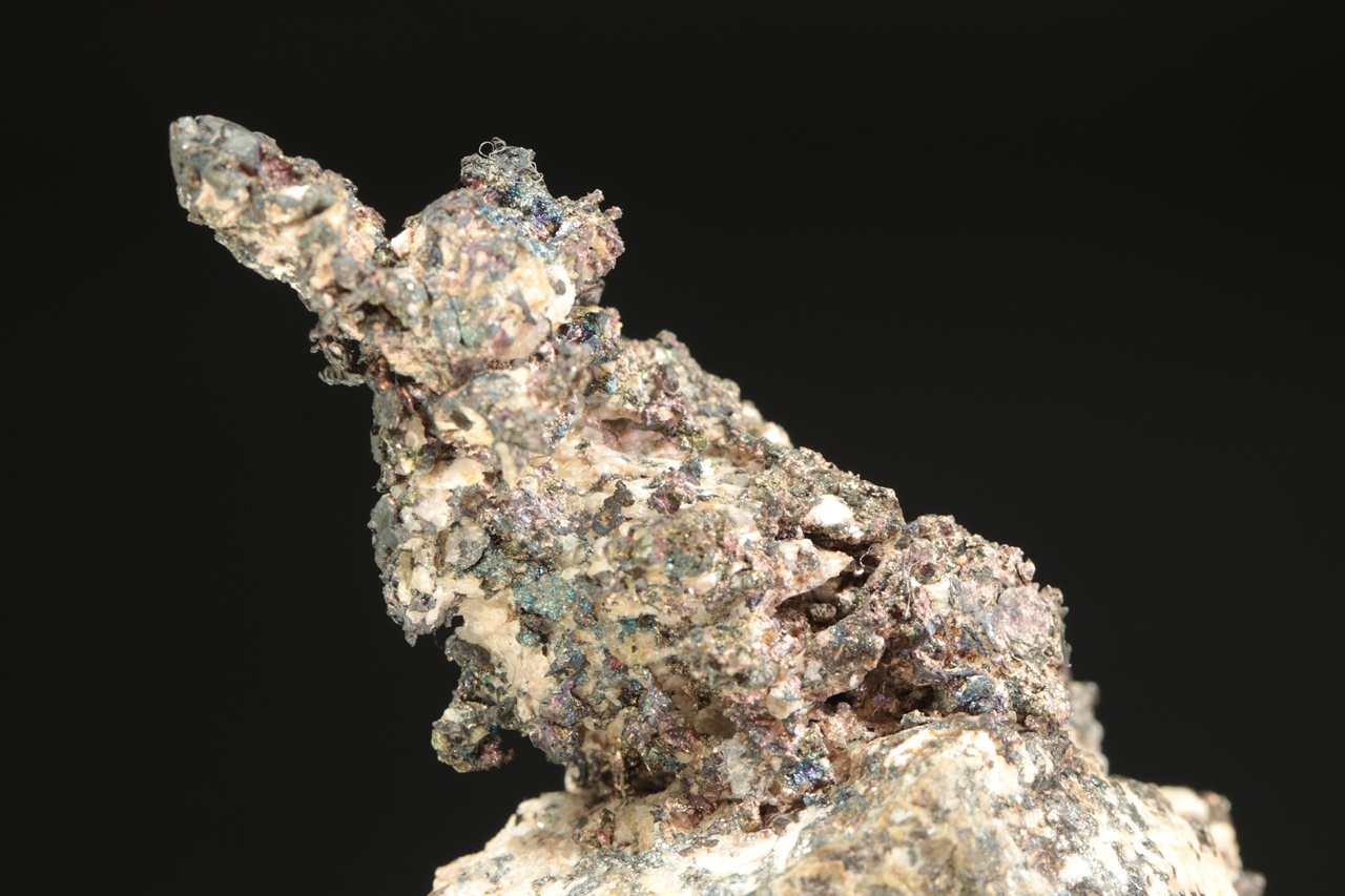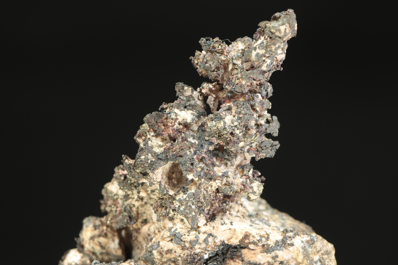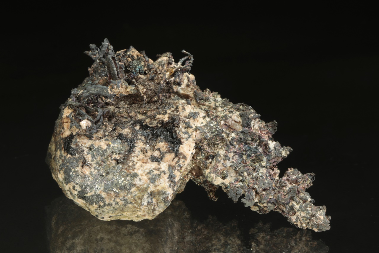 Vzorek stříbra ze známé peruánské lokality narostlého na podložce. Stříbro v jedné části vzorku tvoří bohatě narostlé dráty až lokny velké až 1,5 cm velké, v druhé pak mohutný keřík velký 3 cm.