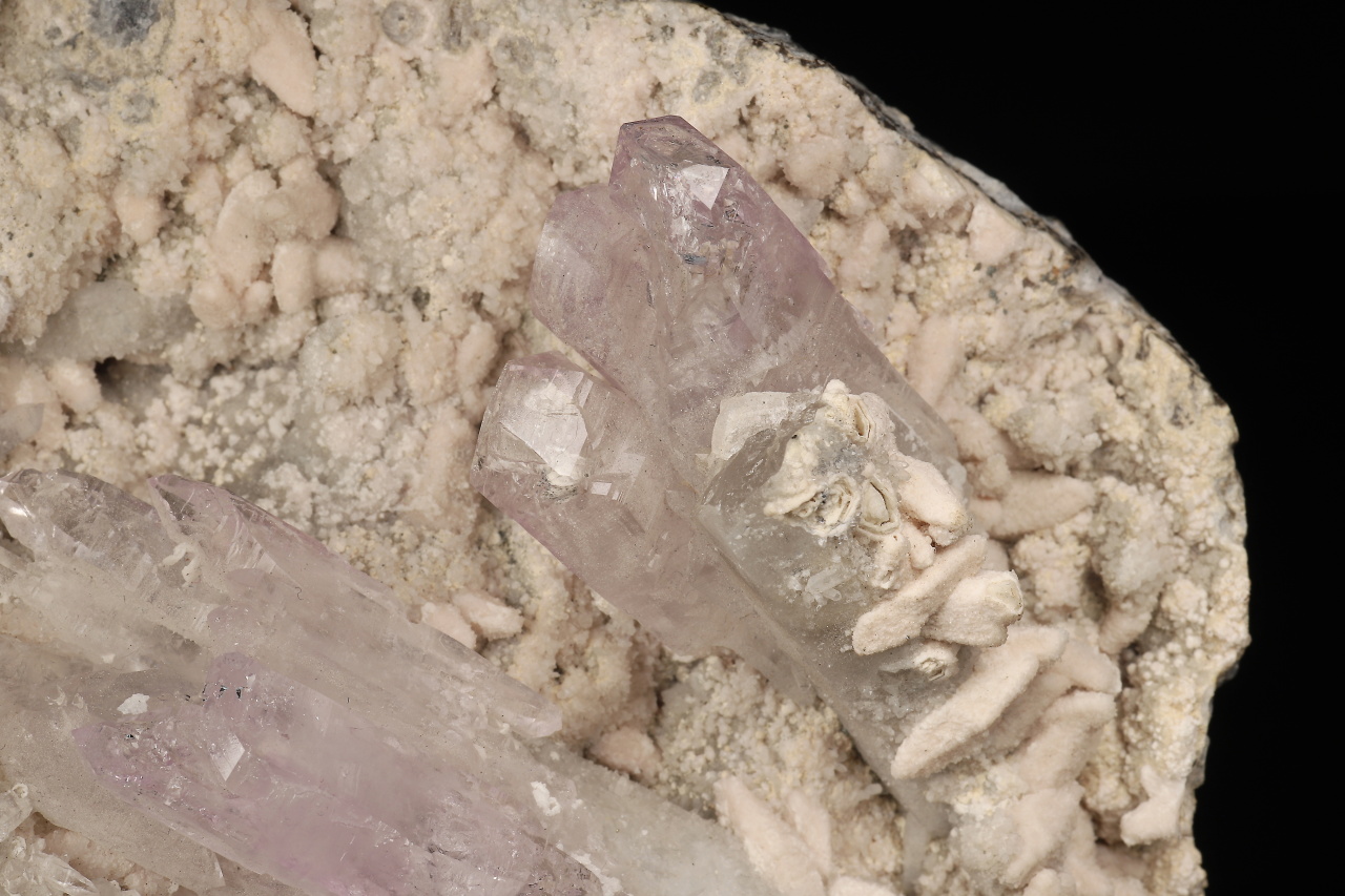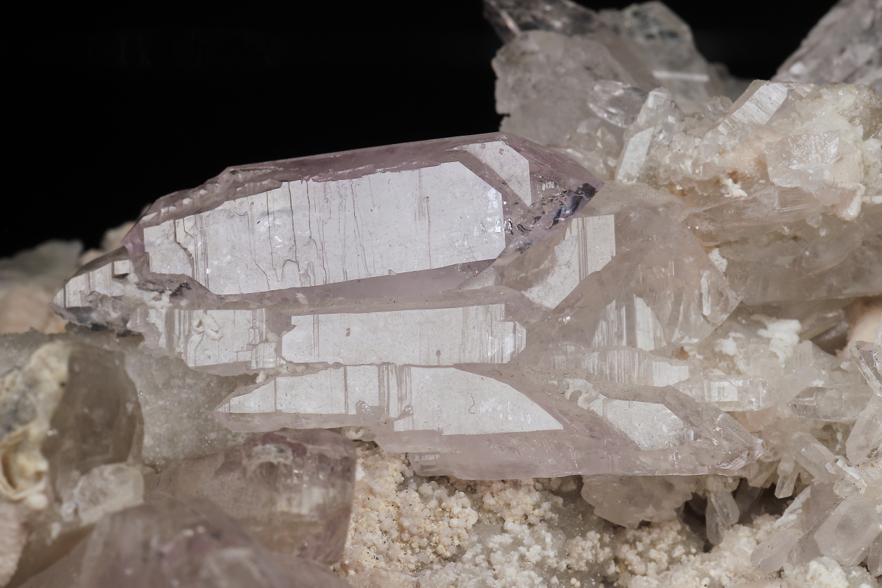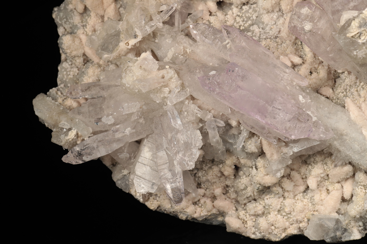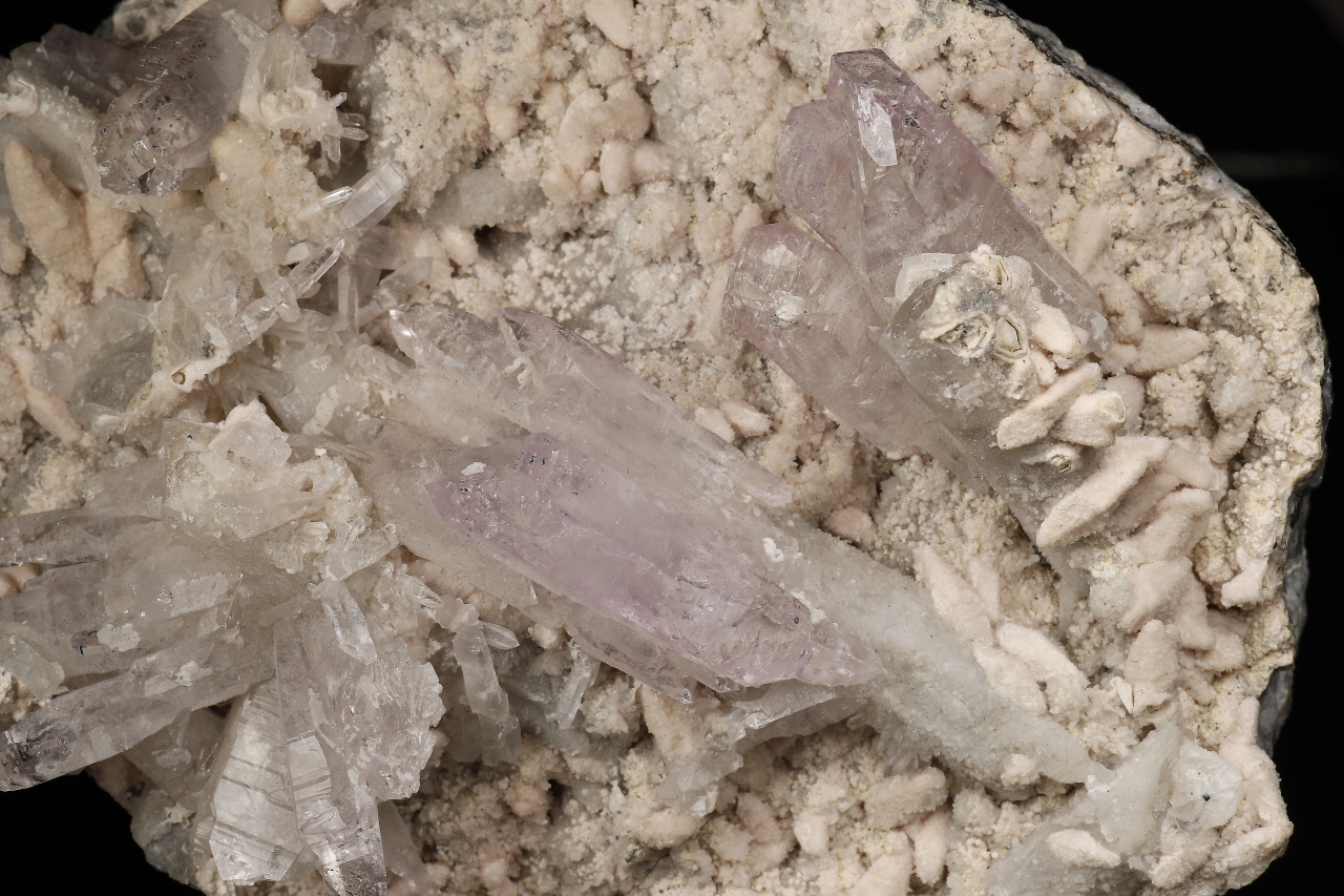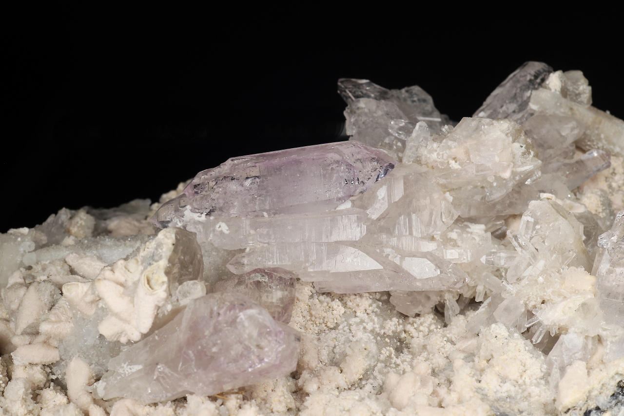 An aesthetic large specimen of pinkish dolomite crystals with light amethyst scepter crystals, so-called “pigeon eggs”. The specimen is composed of clear double-terminated quartz crystals with a white younger crust, onto the apexes of which adhere transparent light purple double-terminated amethyst crystals. These crystals are accompanied by pinkish dolomite. These minerals grow on a massive galena-sphalerite vein. A historical, larger, very elegant specimen from Banská Štiavnica.