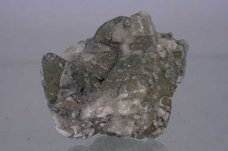 Classic specimen of calcite “sugared” with golden pyrite from the Příbram uranium district.