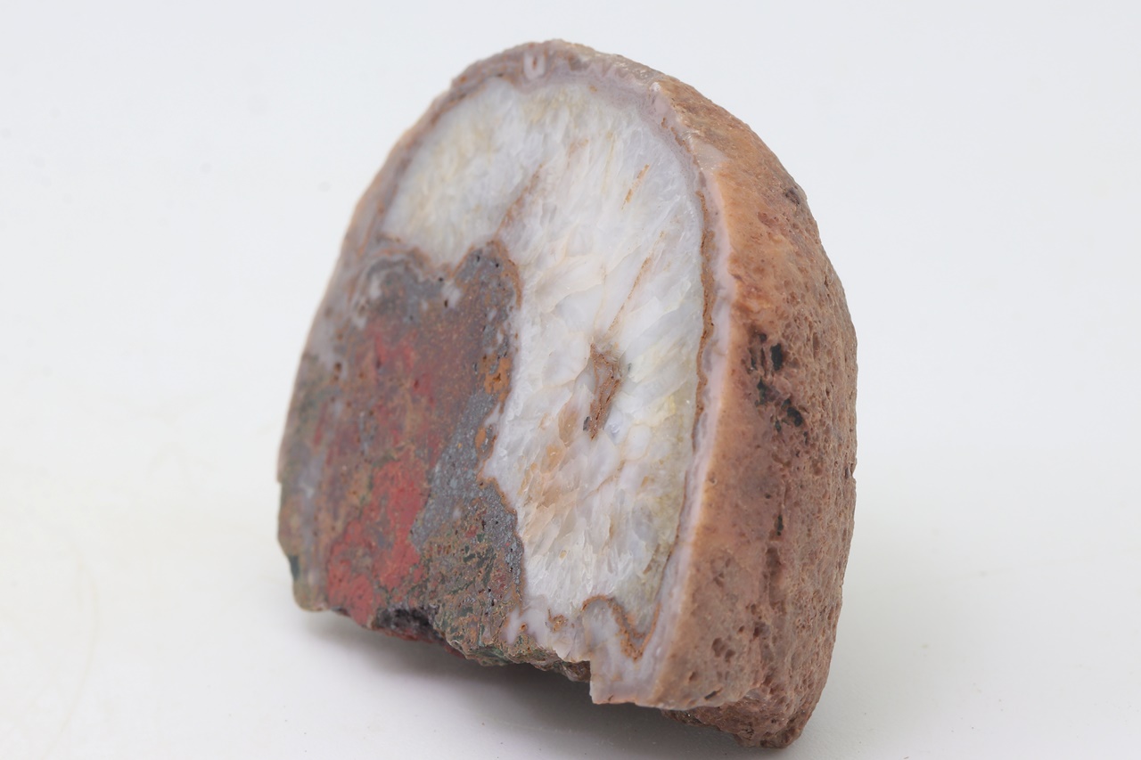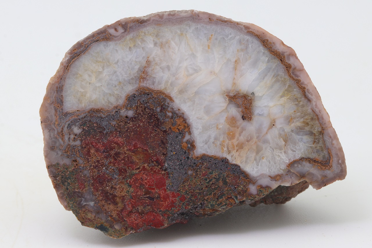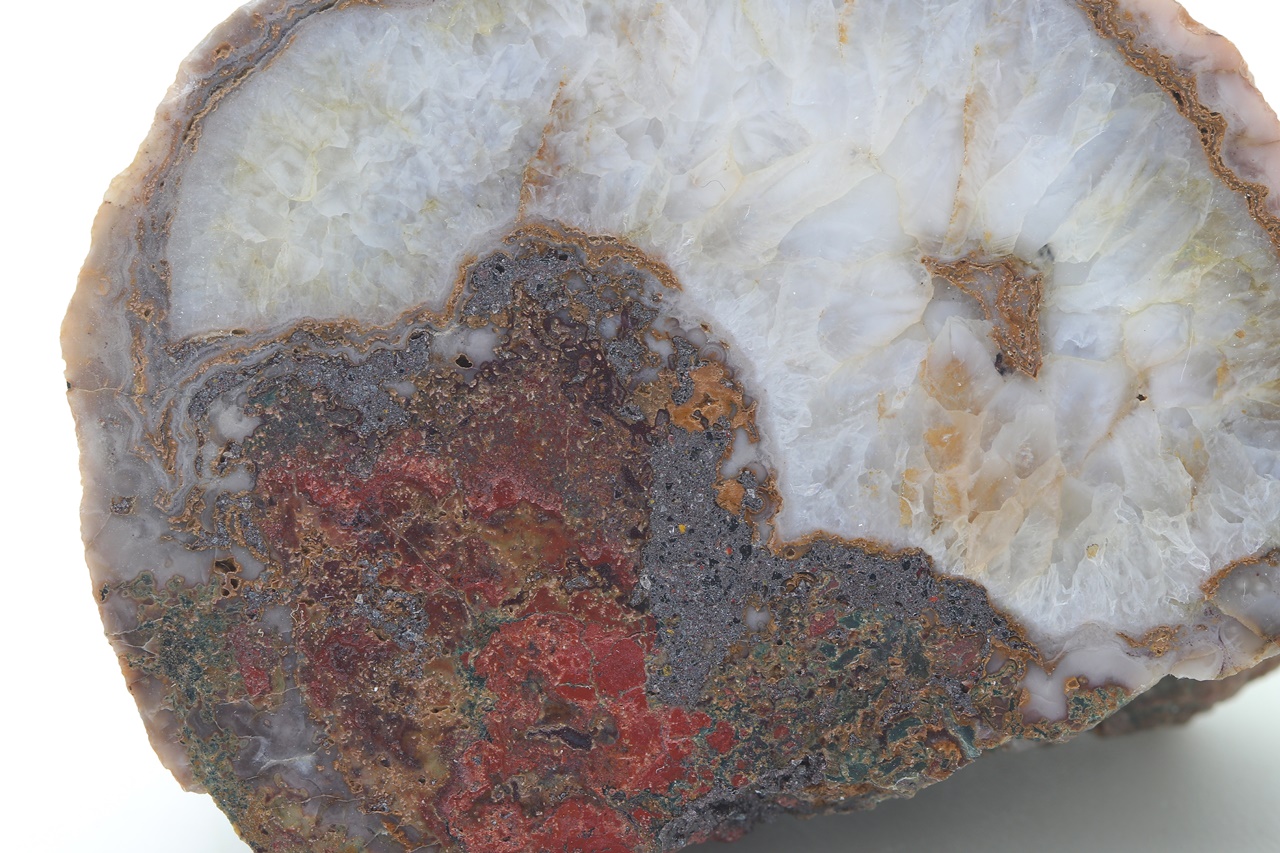 Polished sample of agate with a quartz core.