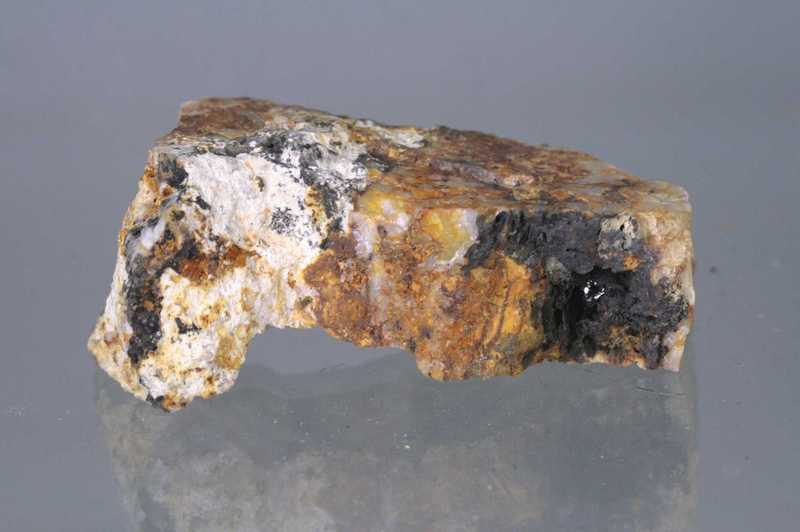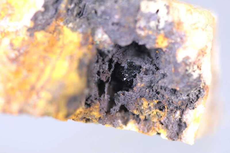A nice specimen of rare libethenite from the type locality. A large, dark green, perfectly developed libethenite crystal in a cavity of porous limonite-covered quartz.