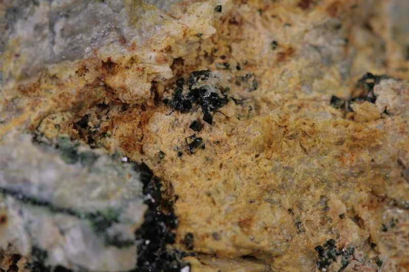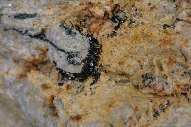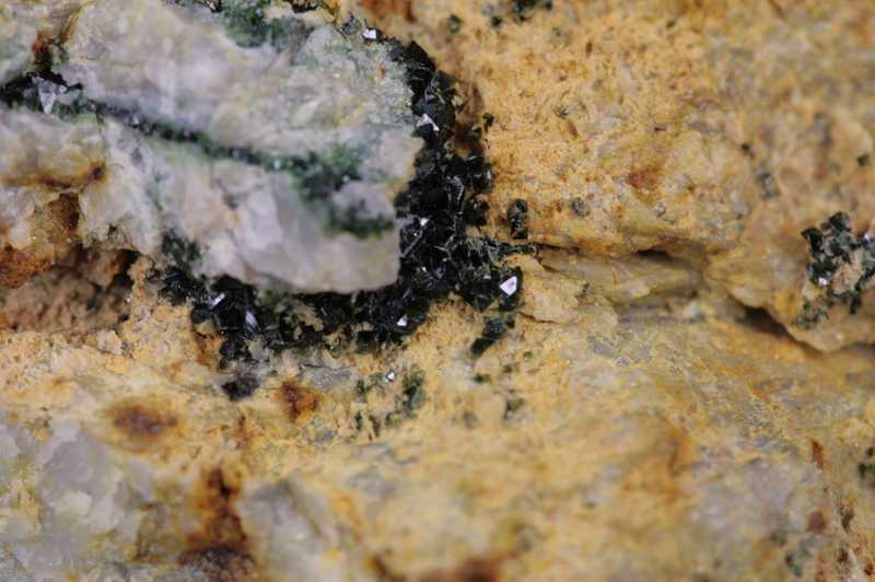 Very nice specimen of small, but very well-developed dark green libethenite crystals from the type locality.