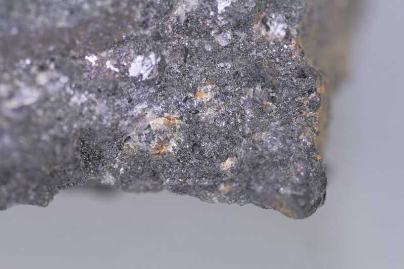 A very fine specimen of the rare beryllium silicate helvine from Zlatý Kopec. A rather large and rich specimen of magnetite-sphalerite ore with distinct orange to yellowish grains of the rare helvine growing into it.
