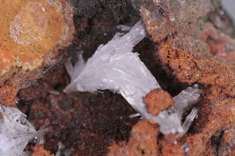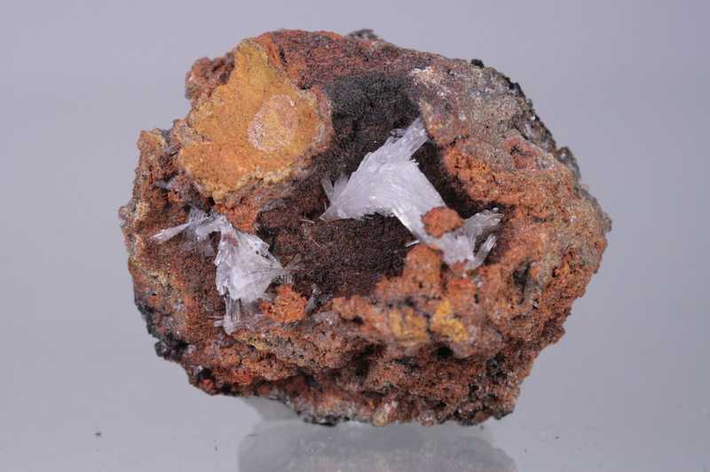 A very aesthetic-looking sample of contrastingly colored hemimorphite on dark matrix from a classic Mexican locality. A nice specimen of colorless transparent hemimorphite crystals growing in a cavity of weathered ore.