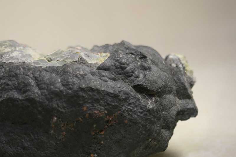 Arsenic from uranium mine no. 21. A large specimen of kidney-shaped arsenic with arsenic crystals up to 2 mm on the surface.