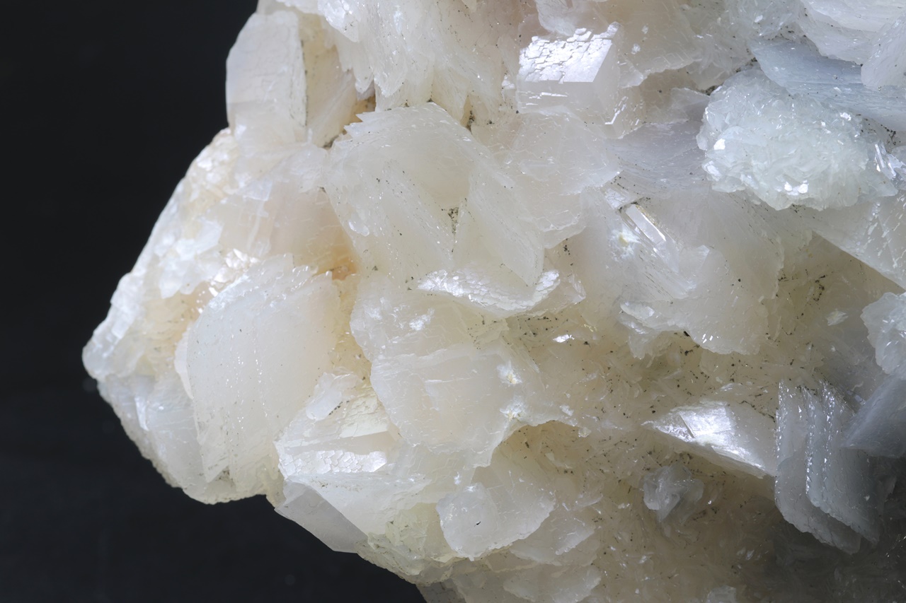 A large specimen of twinned crystals of manganese-rich dolomite covered with shiny scalenohedra of light and sometimes bluish calcite up to 3 cm large.