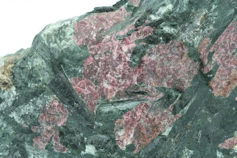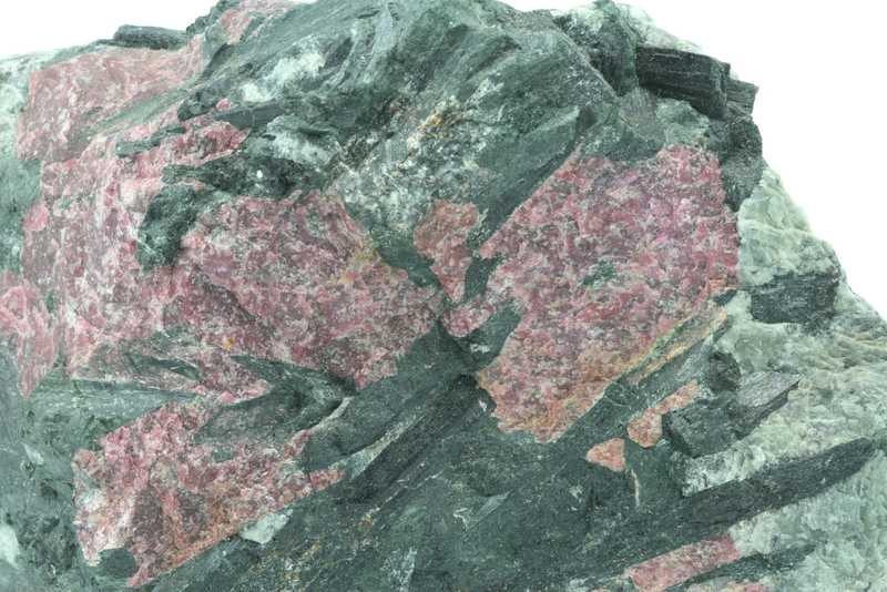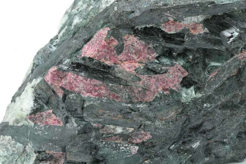 A beautiful large specimen with grains of purple eudialyte of up to 4 cm and black aegirine of up to 7 cm from Russia. A sample of clearly purple eudialyte silicate and black aegirine from the Kola Peninsula in Russia.