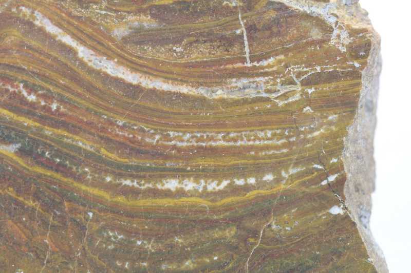 An aesthetic “iron stone” specimen with predominant bright red-yellow and green colors from Sebečice. A very nice example of iron quartz with a banded texture .