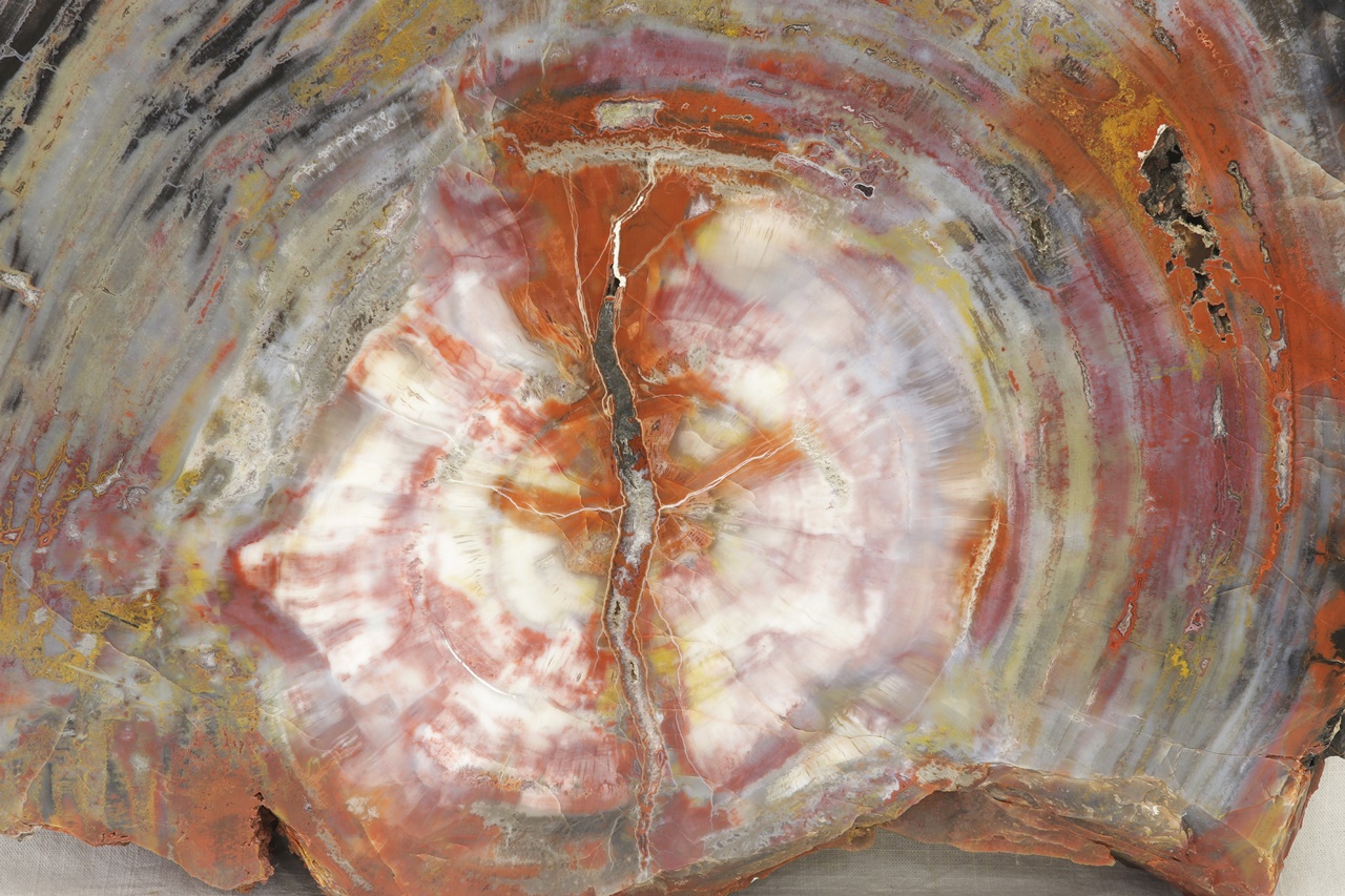 A beautiful specimen of petrified wood from the Holbrook site, Arizona, USA. A very nice specimen of a polished piece of beautifully colored opalized wood.